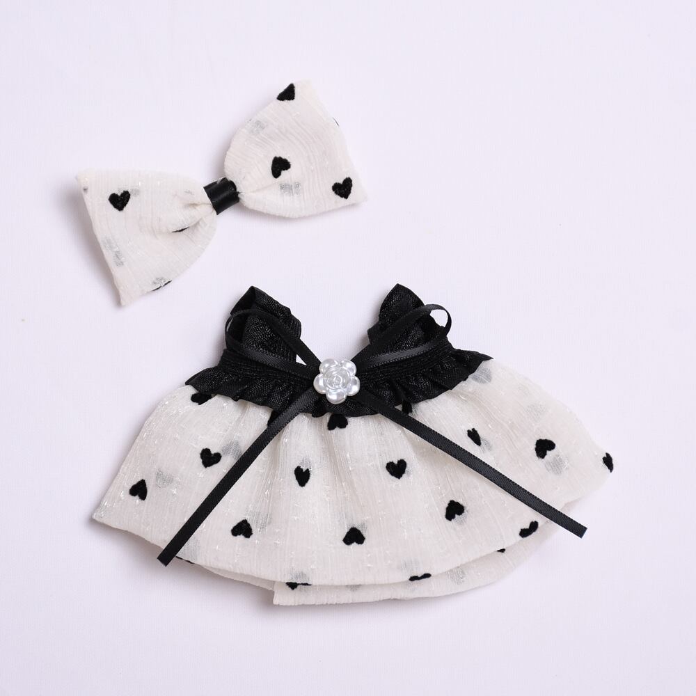 同じ素材で仕上げたリボン型のヘアアクセサリーもセットにし、統一感のあるスタイリングを楽しめます。