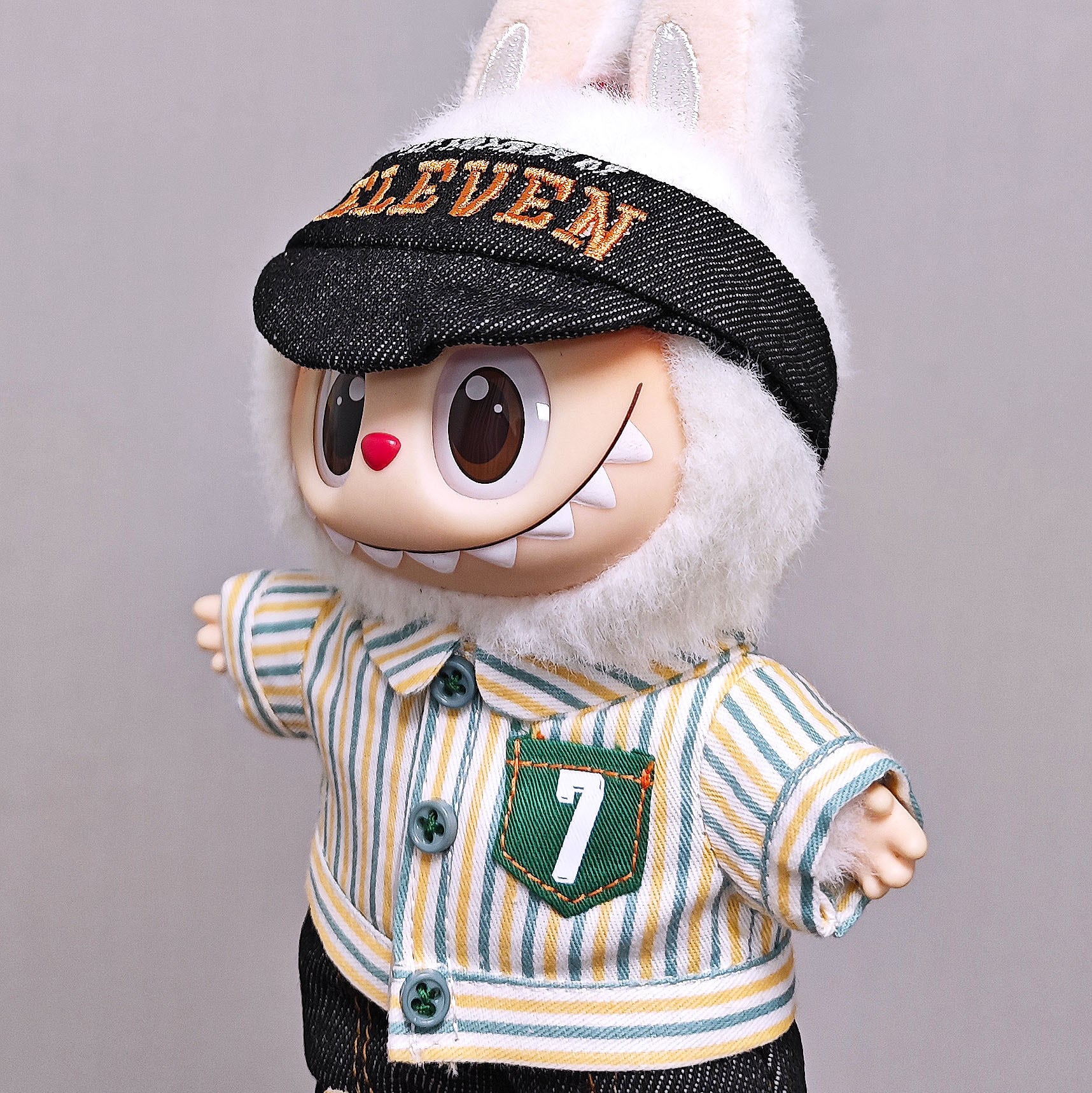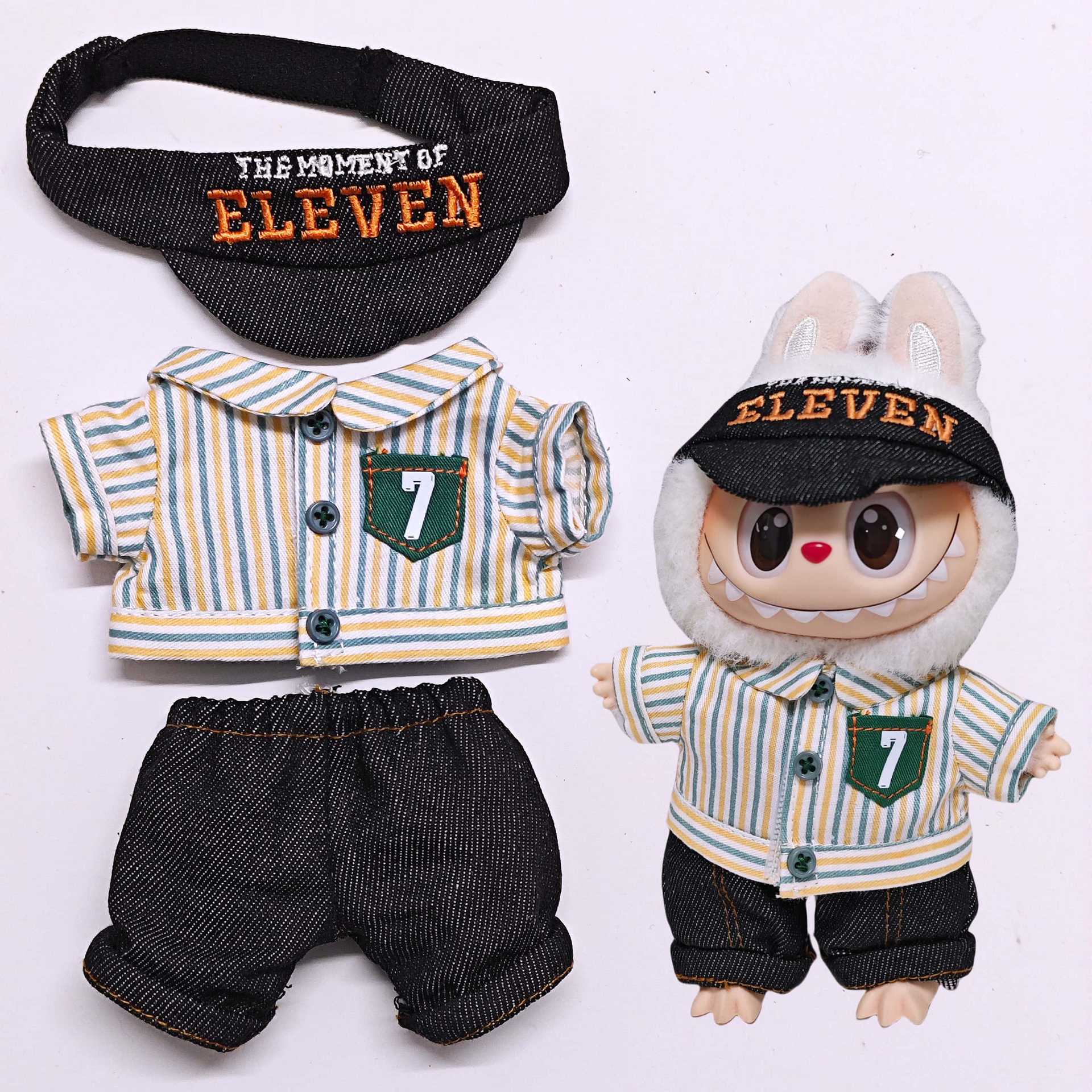 LABUBU 1〜3代サイズに対応した、ユニークな店員風コスチューム3点セットです。