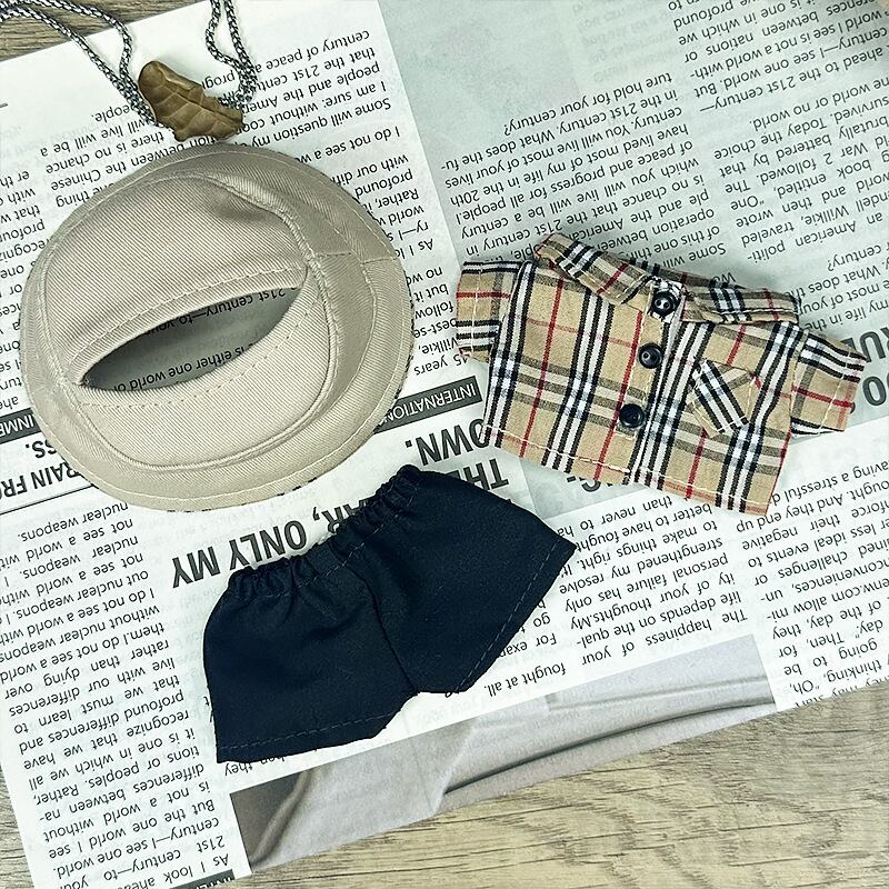 【セット内容】チェック柄シャツ+パンツ+バケットハット