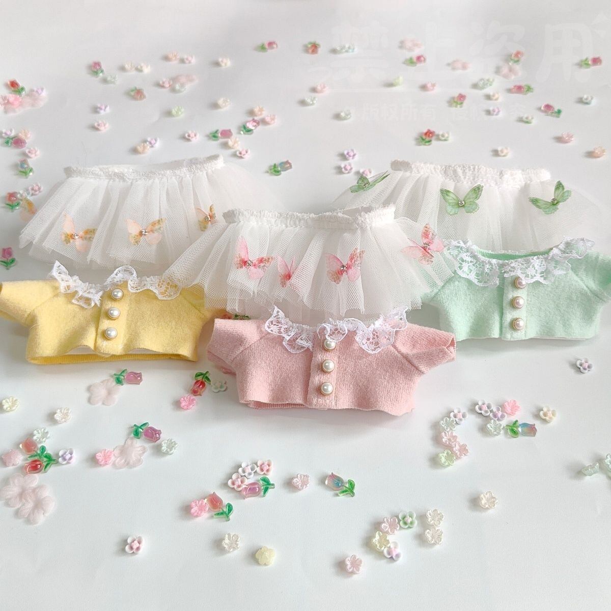 ニット素材のトップスと、蝶々モチーフ付きのふわふわチュールスカートの2点セットです。