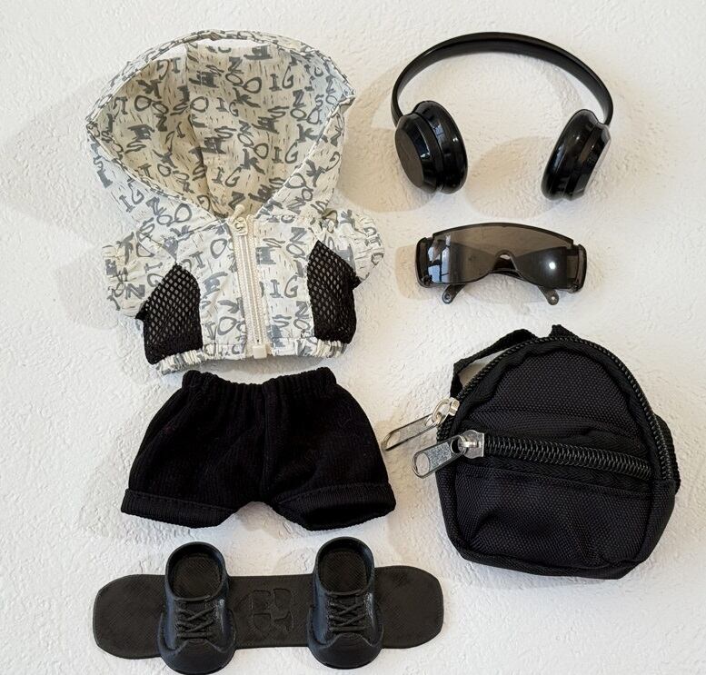 【セット内容】パーカー+パンツ+サングラス+ヘッドホン+バックパック+スケートボード