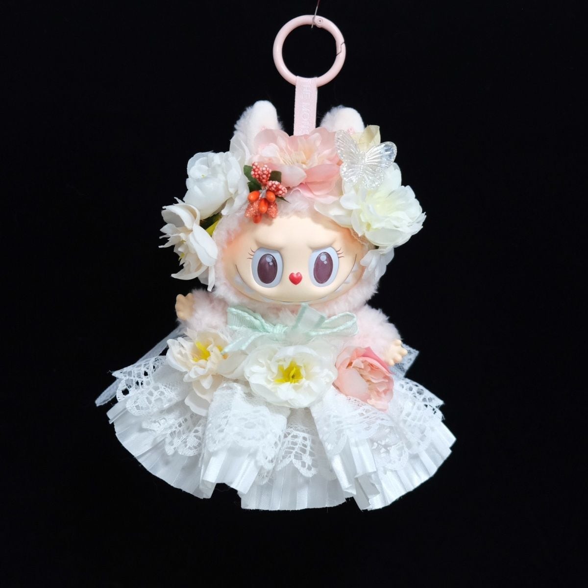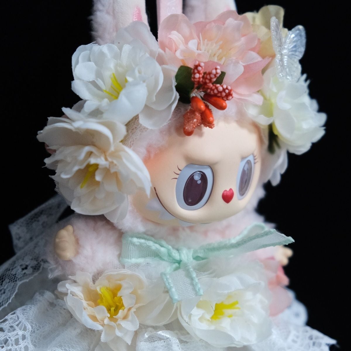 繊細なレースとやさしい色合いの花飾りが、幻想的でやさしい印象を与えてくれます。