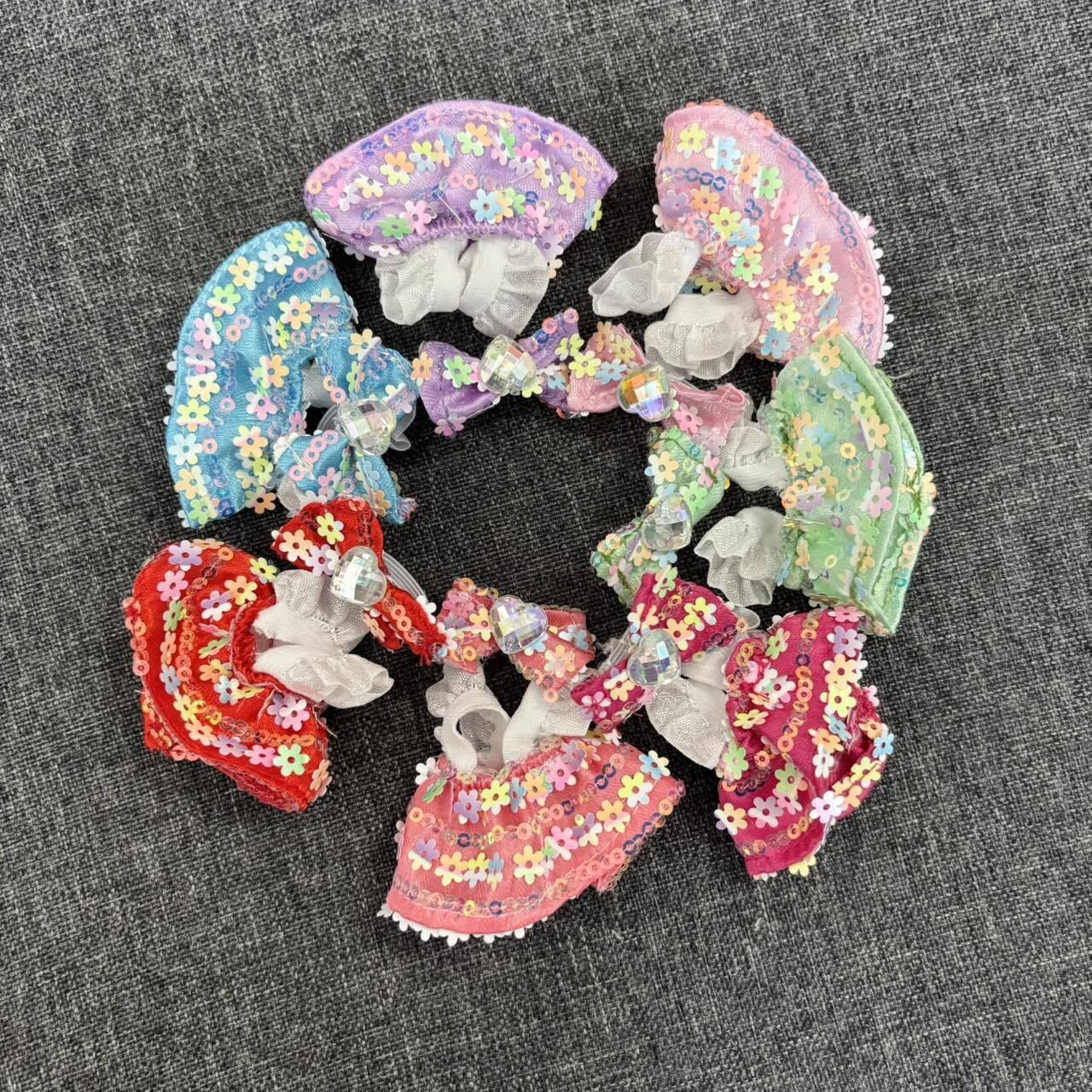 ハンドメイド製品のため、スパンコールの配置・リボンの形などに個体差があります。
