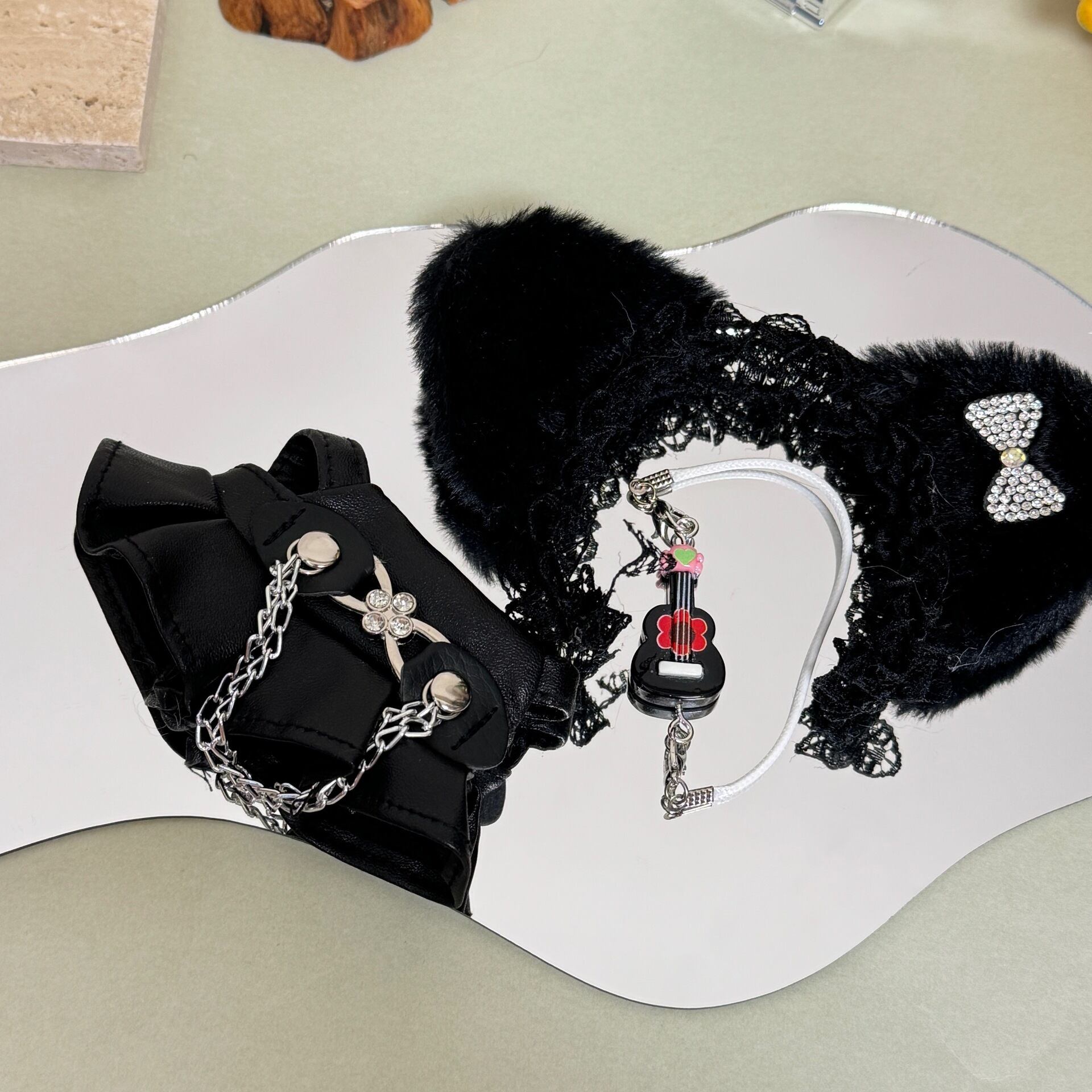 セット内容:ワンピース+猫耳ヘアアクセサリー+ギター
