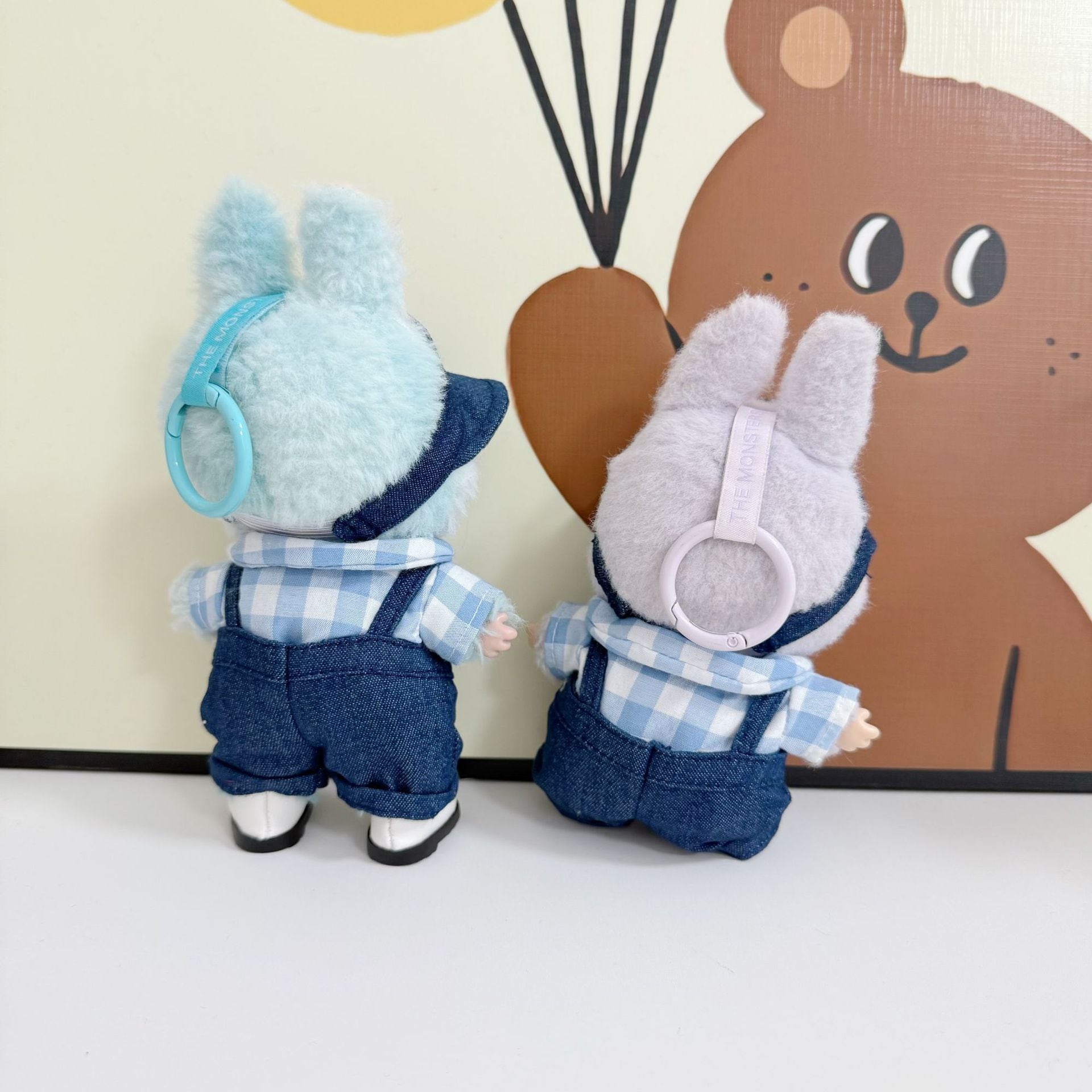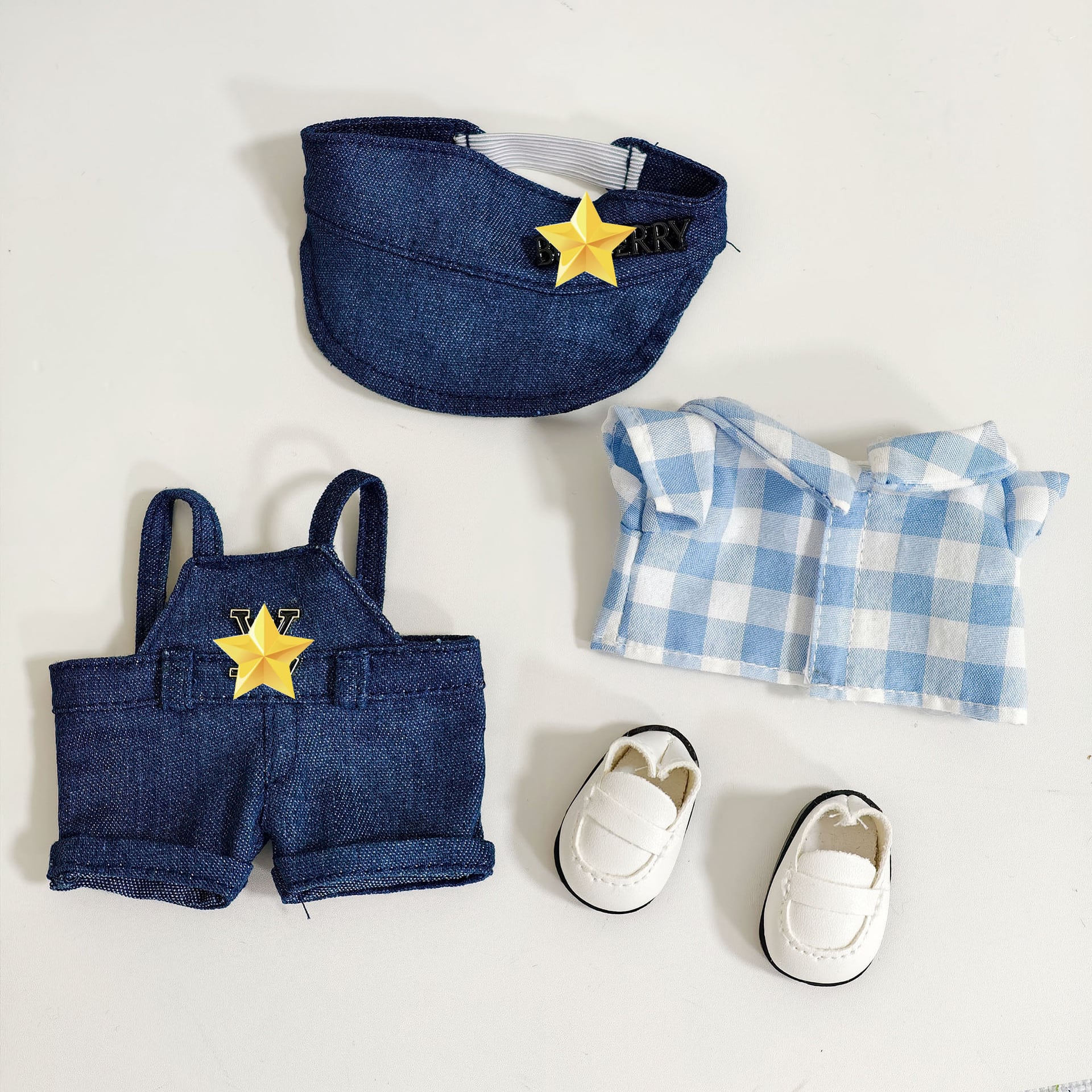 チェックシャツ+デニムサロペット+デニム帽子の3点セット