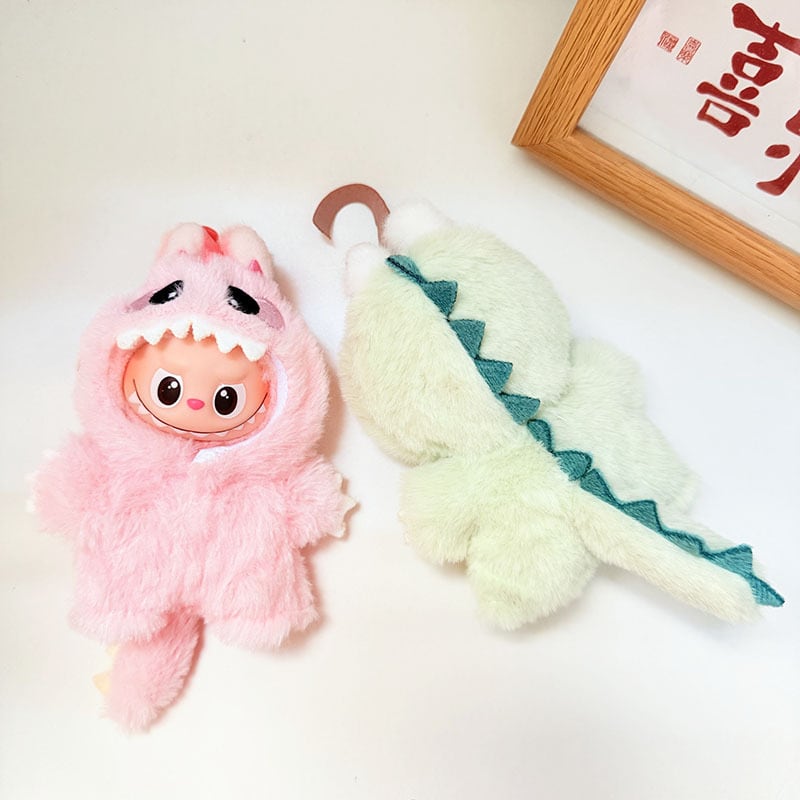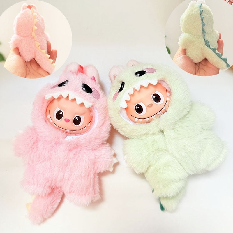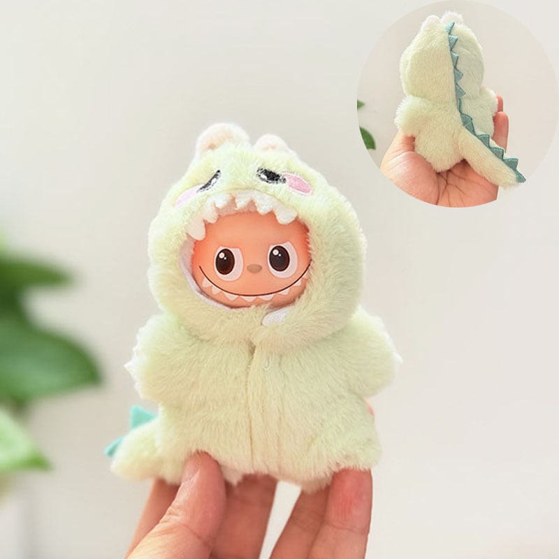 ・Labubu4代サイズにぴったりの恐竜モチーフ毛布素材ロンパース。