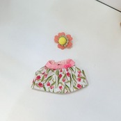 チューリップ柄のワンピースと花モチーフのヘアアクセサリーの2点セット。