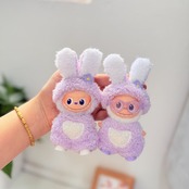 毛足の長いもこもこ素材、ロンパース+アクセサリーの4点セット。