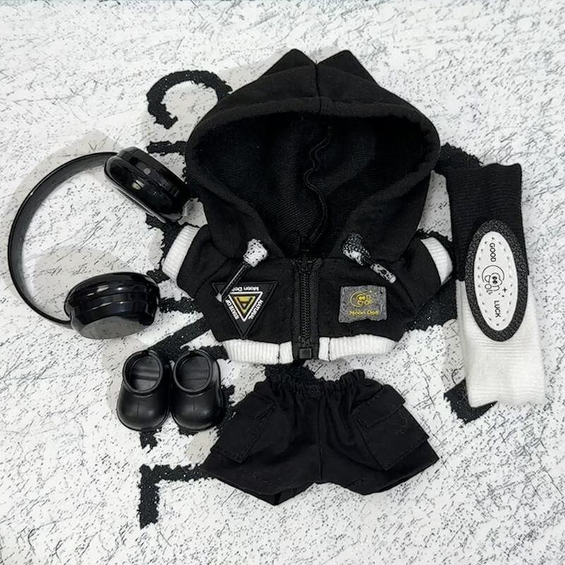 パーカー+パンツ+ヘアバンド+シューズ+ヘッドホン Labubu 1〜3代用 ぬいぐるみ おしゃれ 着せ替え 5点セット
