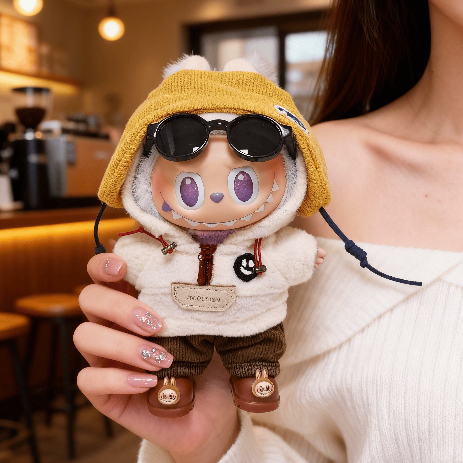 秋冬にぴったりの落ち着いた色合いで、Labubuを可愛く彩ります。