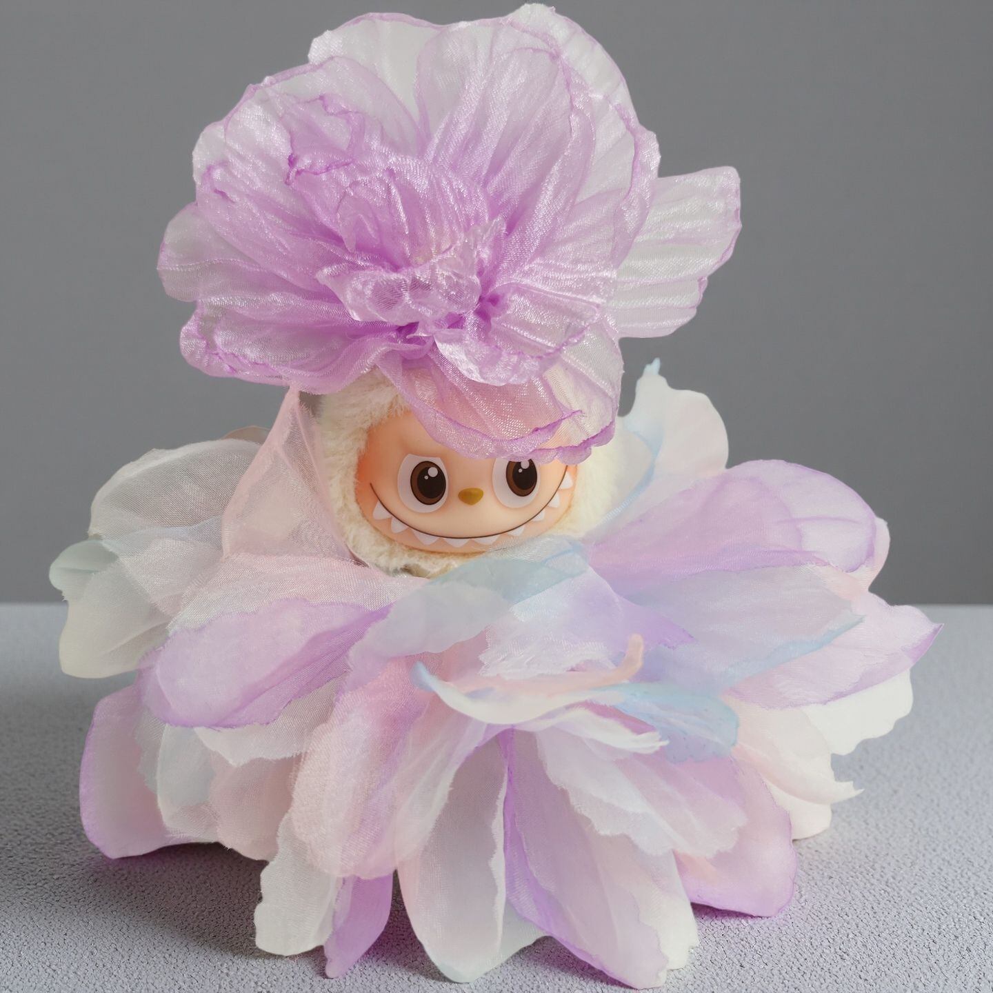 Labubu 4代用 花柄チュールドレス+花モチーフヘアアクセ ぬいぐるみ着せ替え衣装 2点セット 全4色