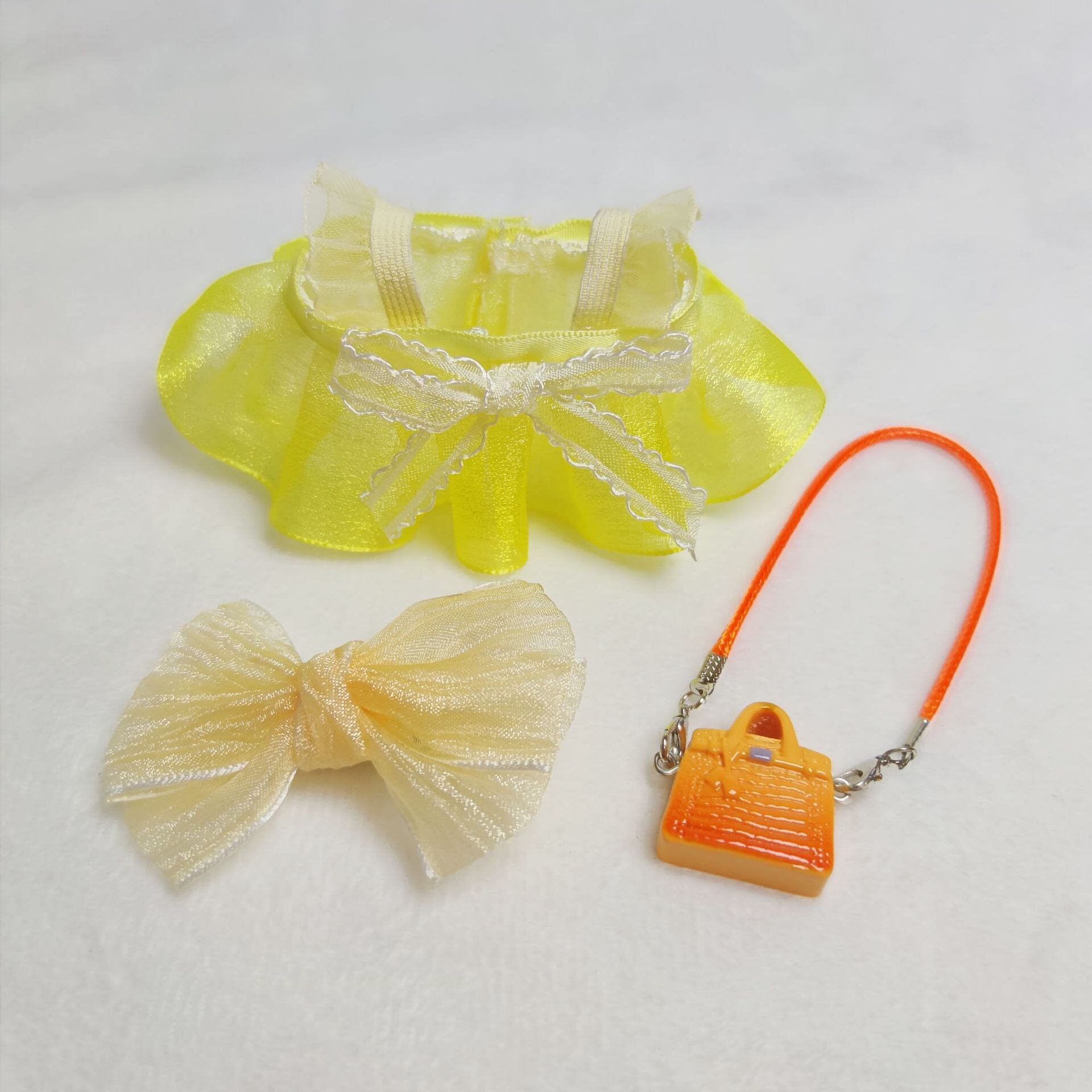 キャンディカラー チュールドレス+ヘアアクセ+チャーム Labubu 1~3代用 ぬいぐるみ 着せ替え衣装 3点セット 全5色