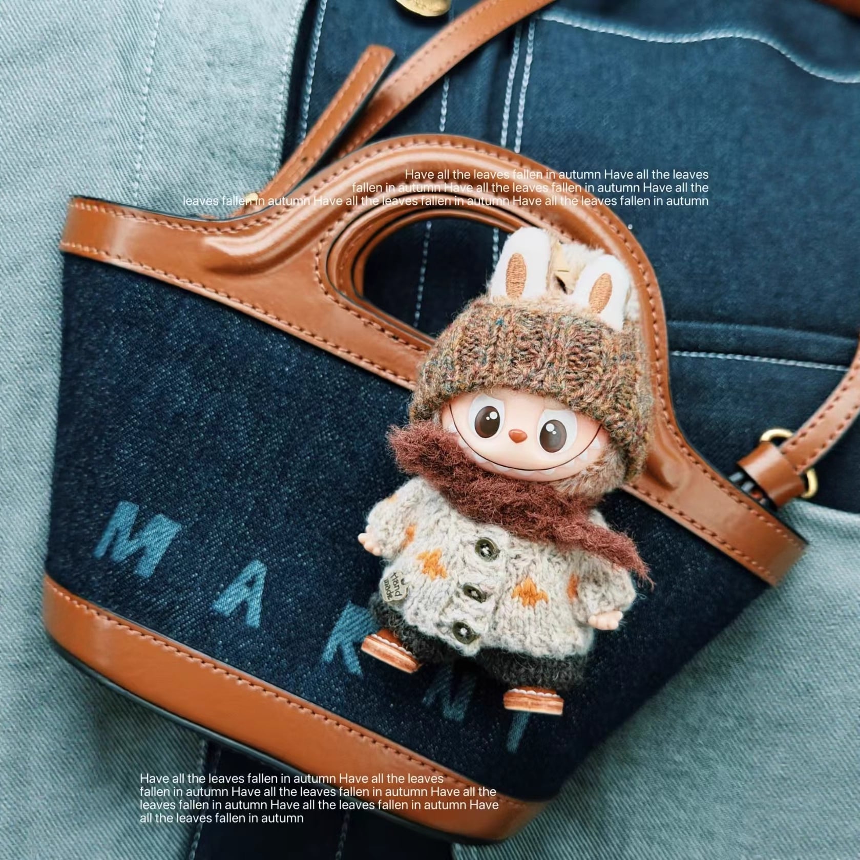 Labubu 4代用 秋冬ニットトップス+パンツ+帽子+マフラー+シューズ ぬいぐるみ着せ替え 5点セット