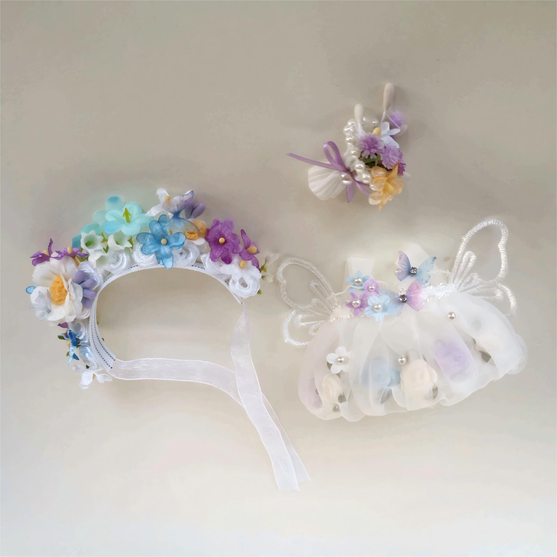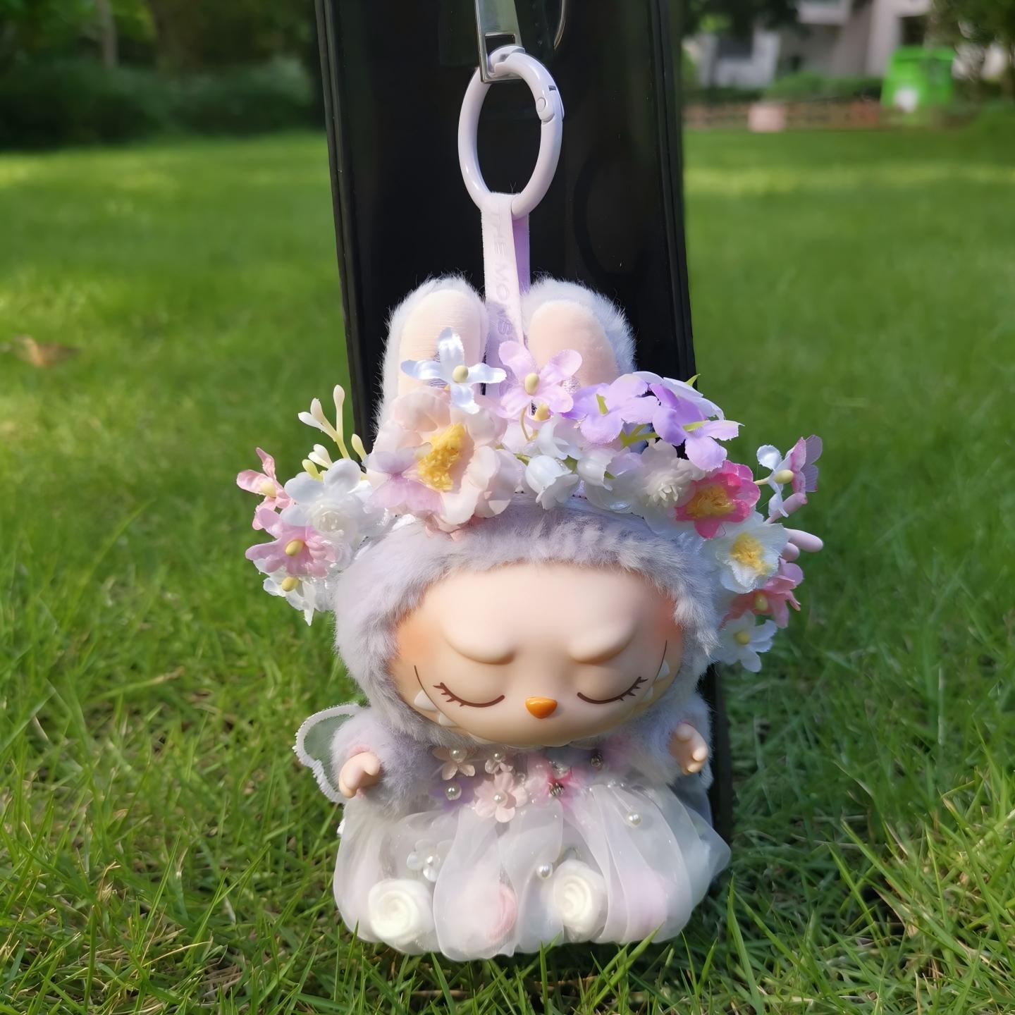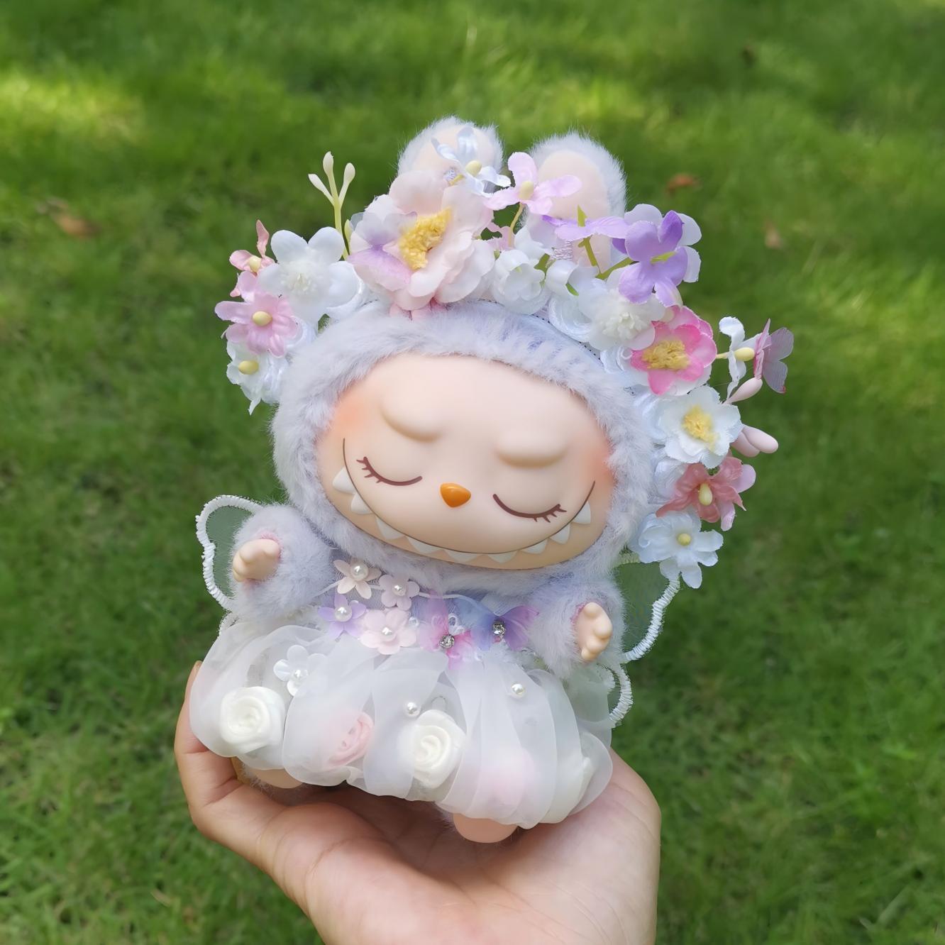 Labubu 1~3代対応 花の精霊 フラワードレス+花冠+ブーケ エレガント ぬいぐるみ着せ替え 3点セット