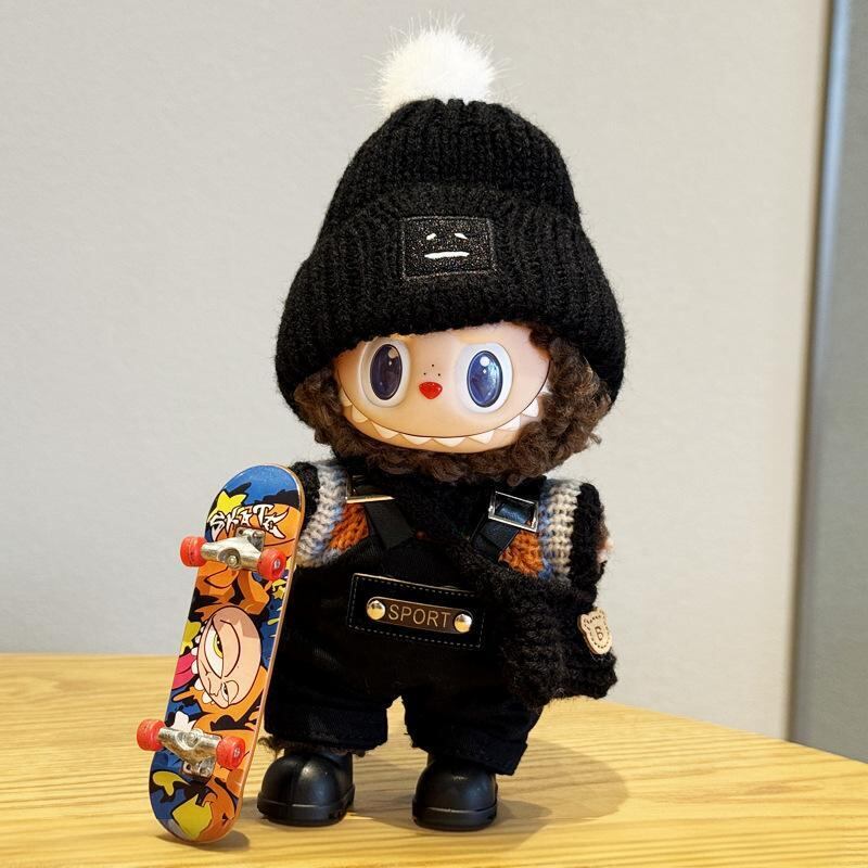 labubu 1〜3代対応 秋冬ニットセーター+サロペット+帽子+ショルダーバッグ+靴+ヘッドホン カジュアル 着替え服 6点セット