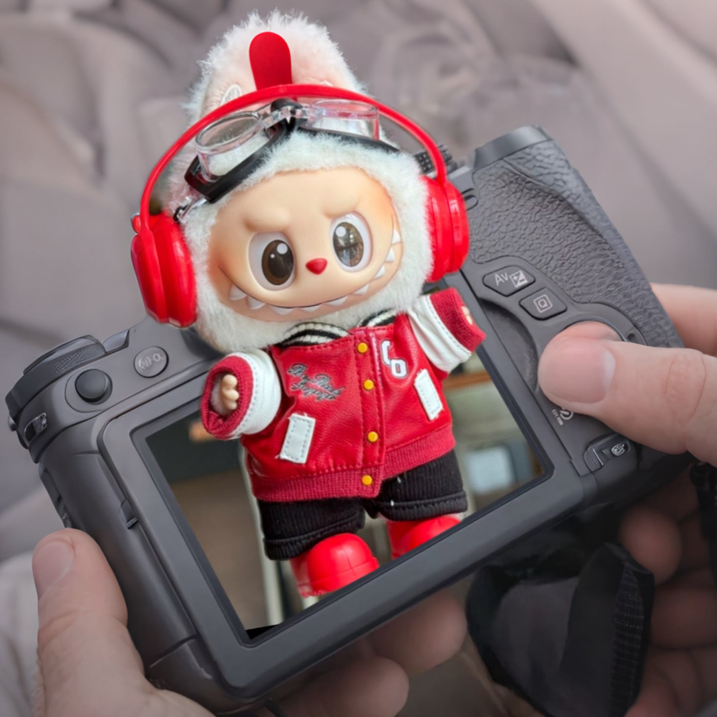 labubu 1〜3代対応 レッド レザージャケット+ブラックパンツ おしゃれ 着せ替え2点セット