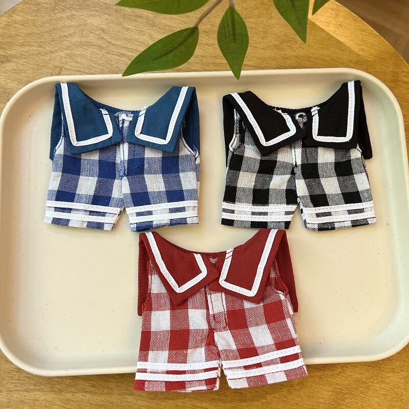 Labubu 1〜3代対応 セーラー風 チェック柄 ロンパース ぬいぐるみ着せ替え アクセサリー 全3色