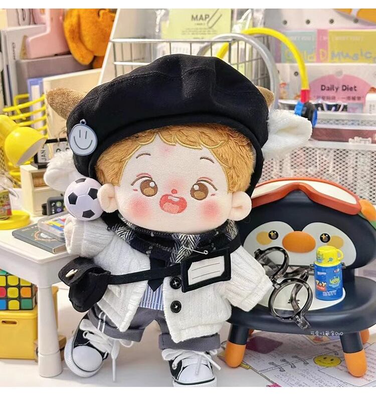17-20cmぬいぐるみ用 秋冬カジュアルアウター+シャツ+パンツ+シューズ+バッグ+ネクタイ 着せ替え 6点セット