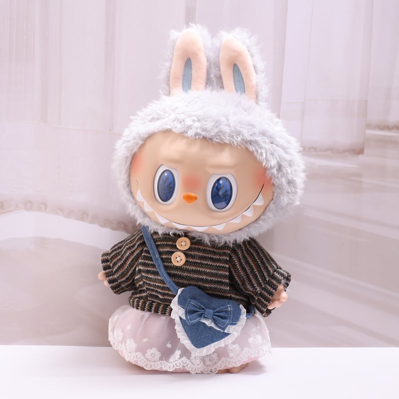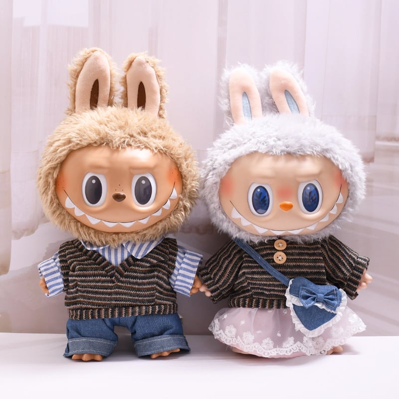 ラブブ 38cm 春の着せ替え セーター+スカート+バッグ/シャツ+ベスト+パンツ Labubu ぬいぐるみ用 カップル 3点セット
