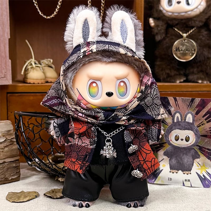 ラブブ 第1~3世代対応 ヘッドスカーフ+ジャケット+Tシャツ+パンツ+ネックレス Labubuぬいぐるみ用 トレンドカジュアル 着せ替え 5点セット