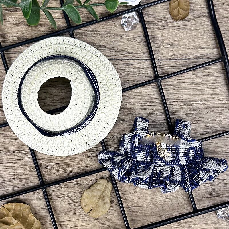 ストローハットを合わせて、季節感のあるコーデが完成します。
