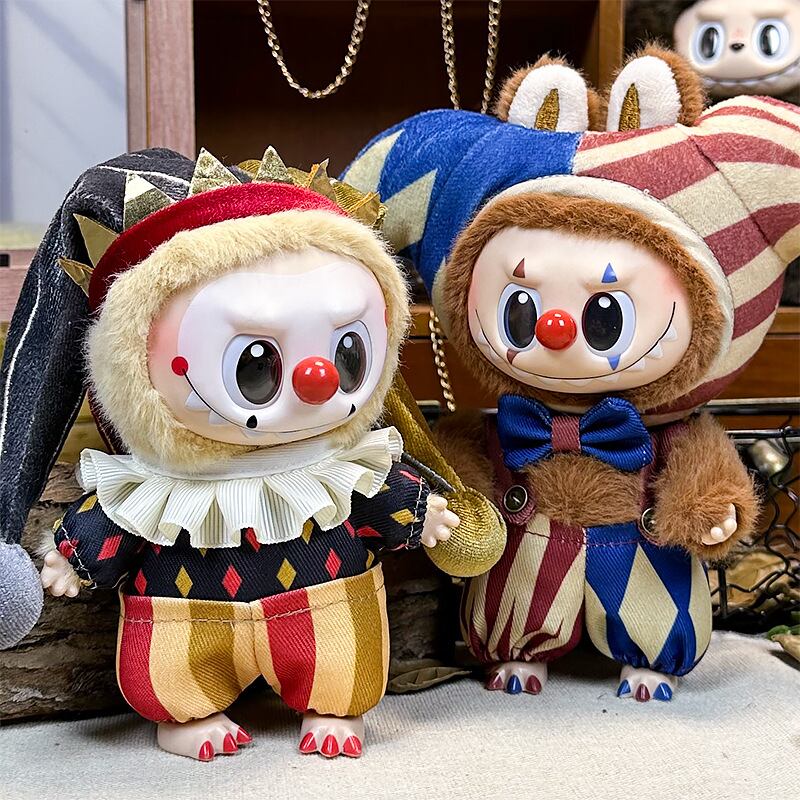 Labubu 1-3代用 クラウン ロンパース+帽子+リボン ぬいぐるみ用 着せ替え 3点セット ブルー/ゴールド