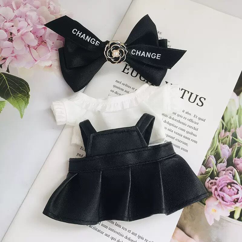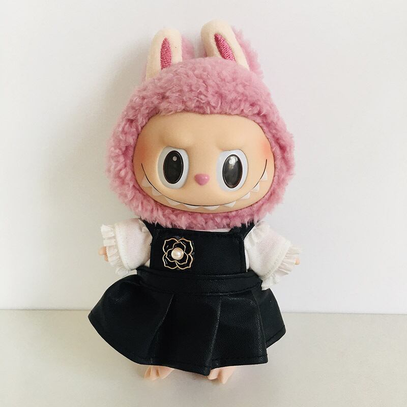 ラブブ1-3代用 ホワイトシャツ+ブラックレザーワンピース+ヘアアクセサリー Labubuぬいぐるみ 着せ替え 3点セット