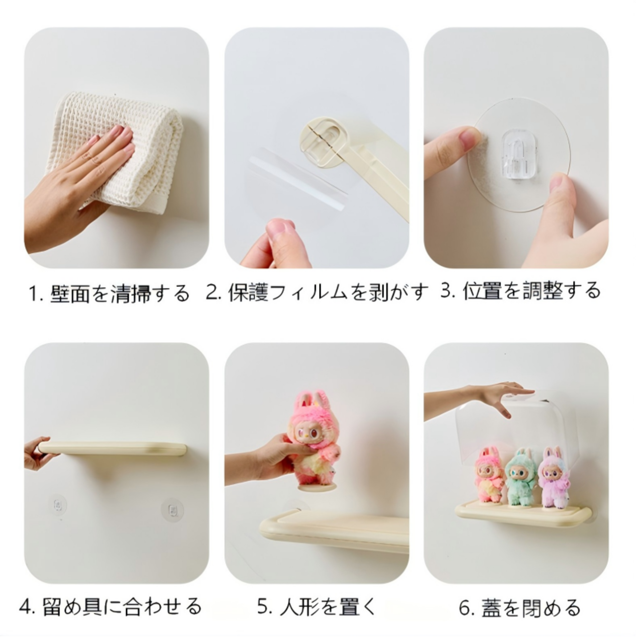 壁掛け ディスプレイラック フィギュア 収納ケース 簡単取り付け ベージュ/ホワイト