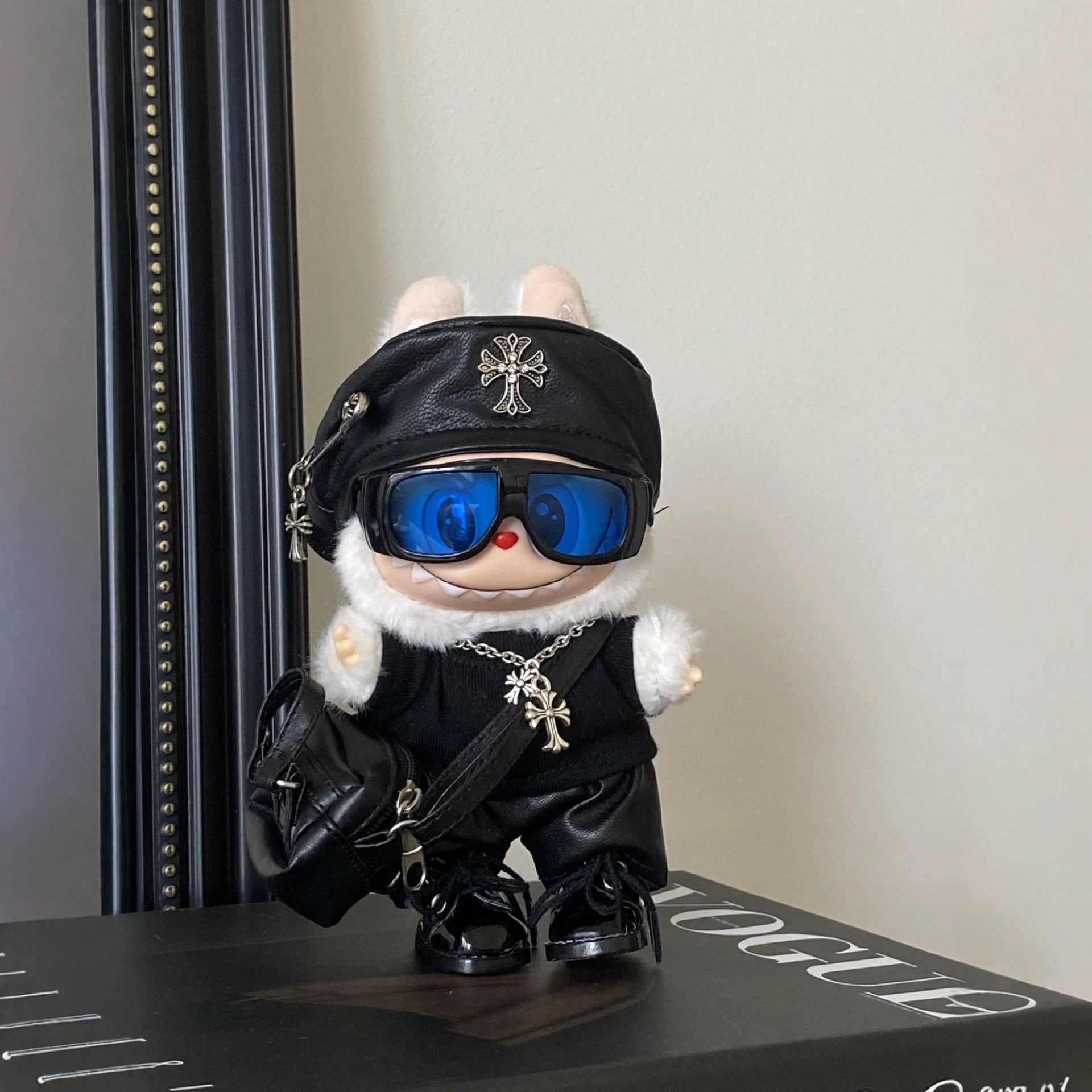 ラブブ 一二三代用 ブラック Tシャツ+パンツ+ベレー帽+サングラス+ネックレス+シューズ+バックパック LABUBU ぬいぐるみ着せ替え 7点セット