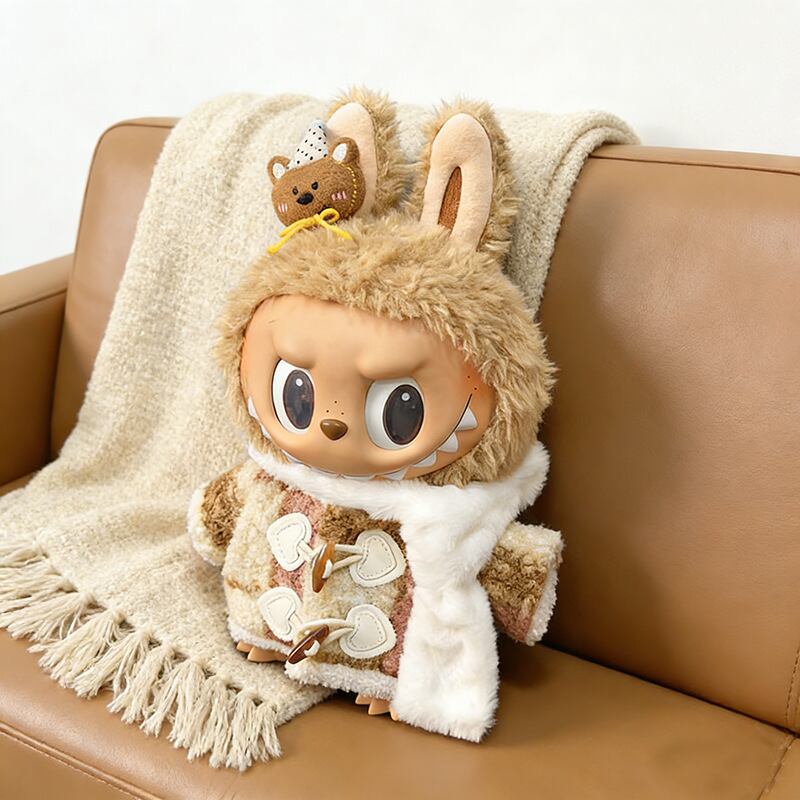 38cm ラブブ用 ブラウン アウター+マフラー+クマモチーフ 冬のお着替え 3点セット