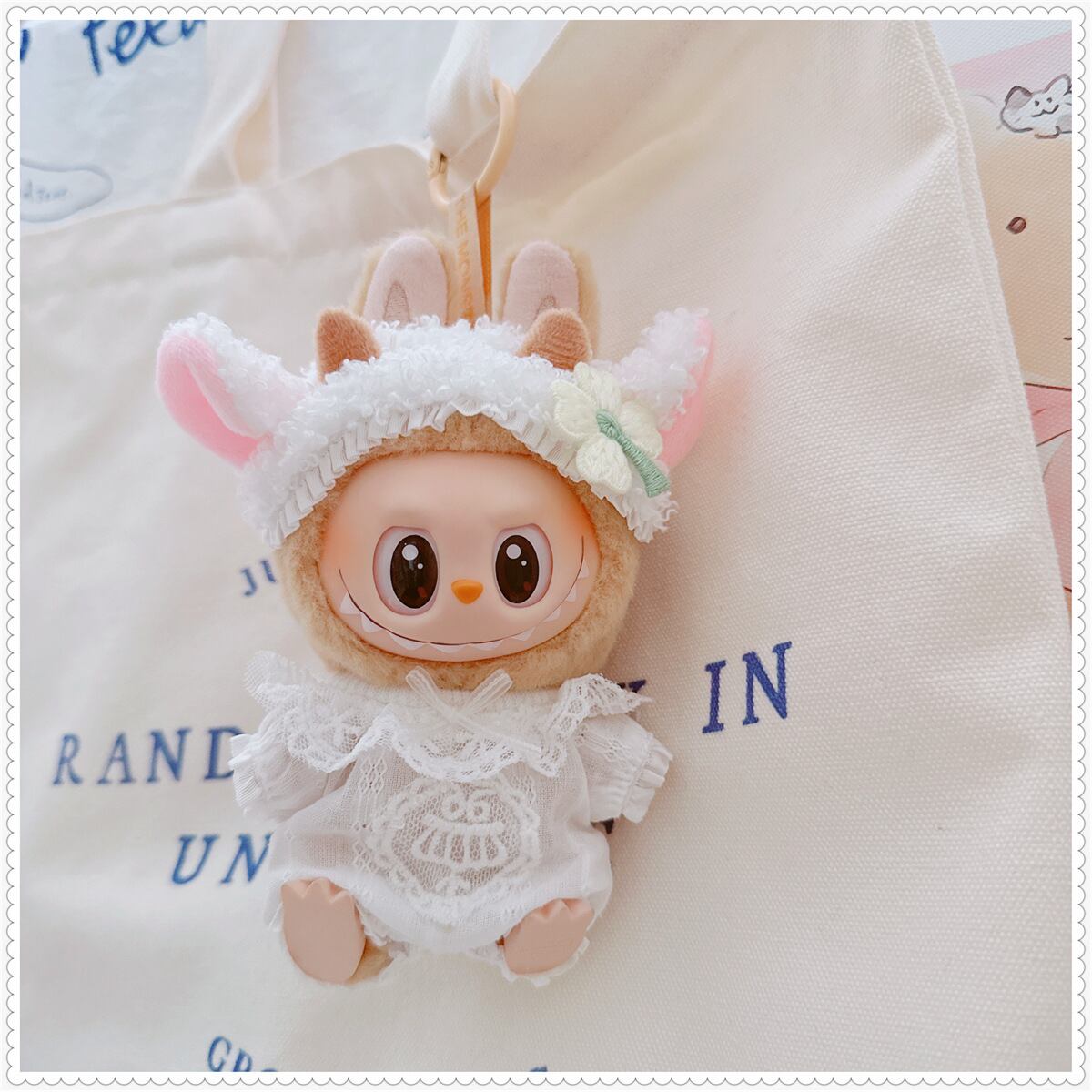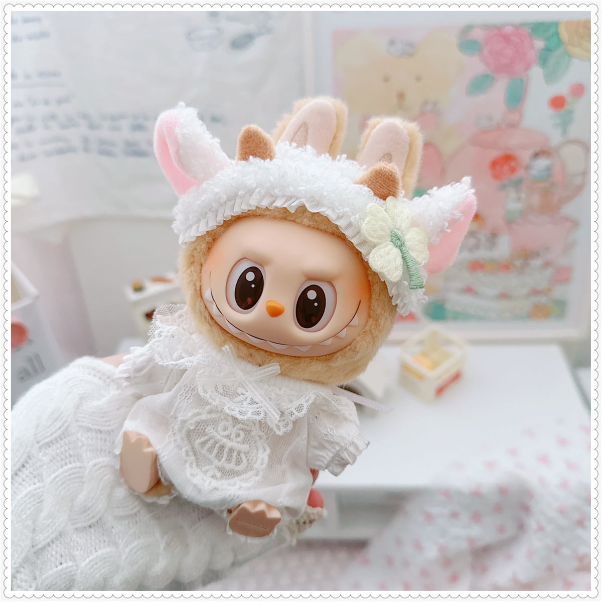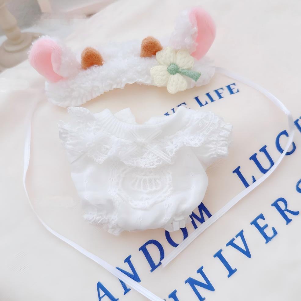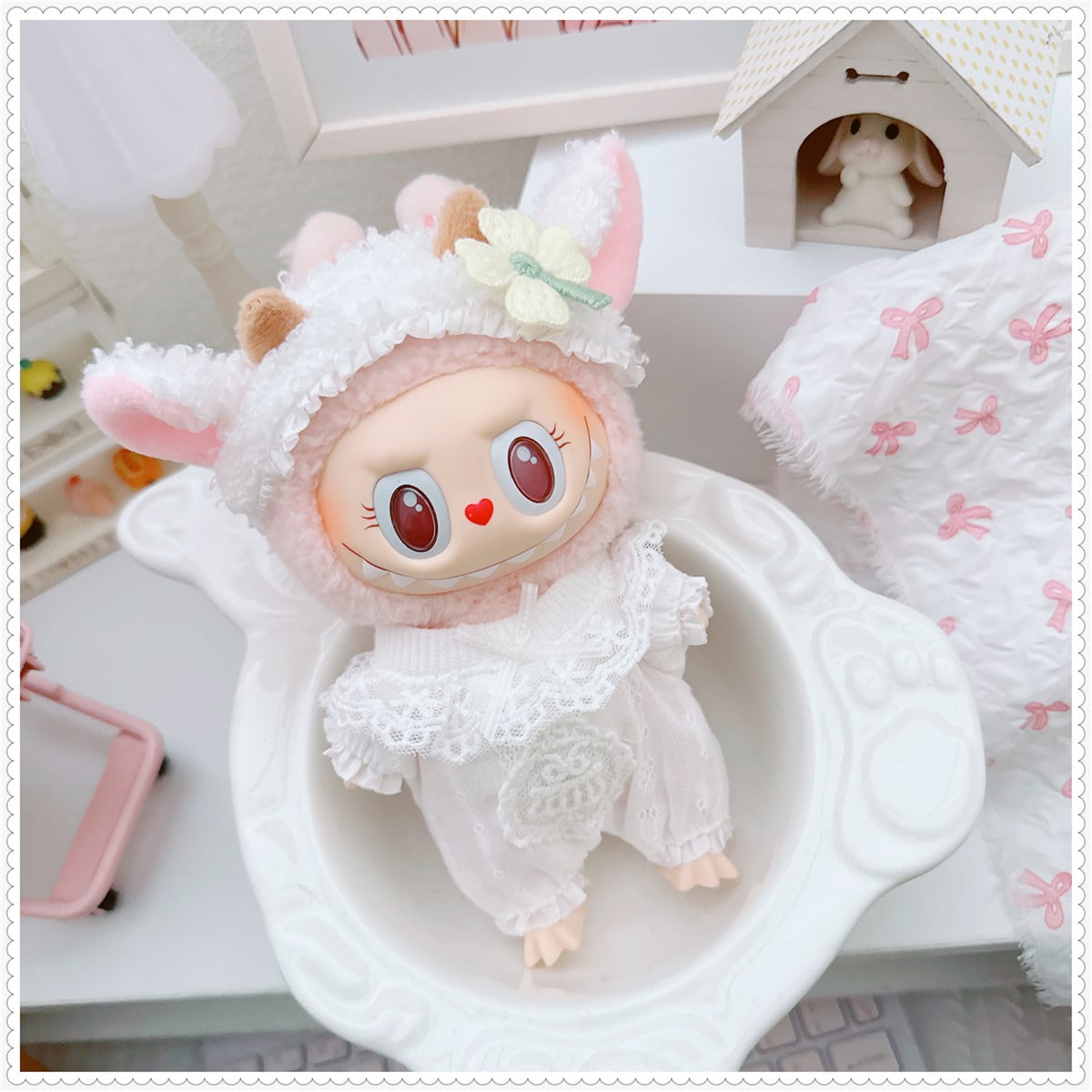 Labubu 1-3代対応 冬のお着替え パジャマロンパース+小羊ヘアバンド ホワイト 2点セット