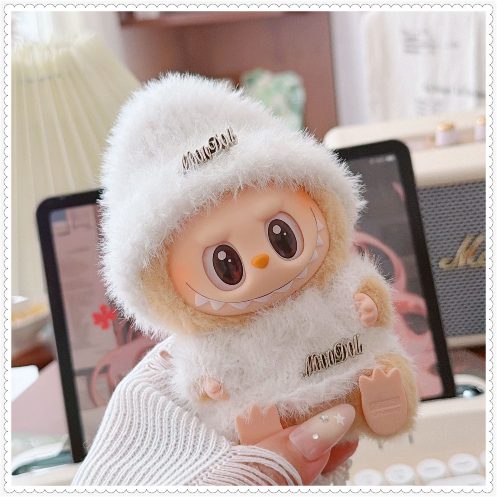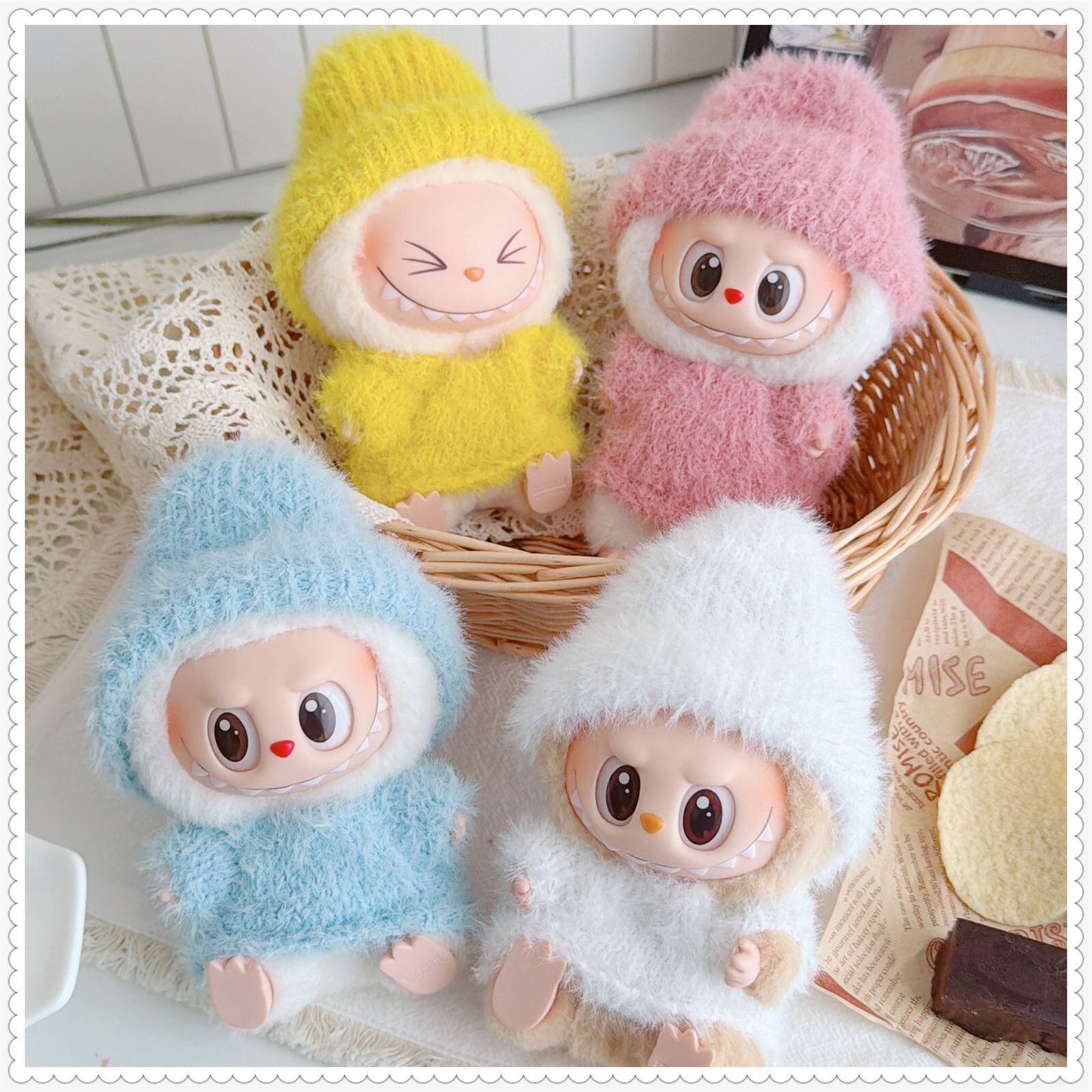ラブブ 一二三代対応 秋冬 無地ニット+帽子+ピンバッジ×2 Labubuぬいぐるみ 替え装 アクセサリー 4点セット 全4色