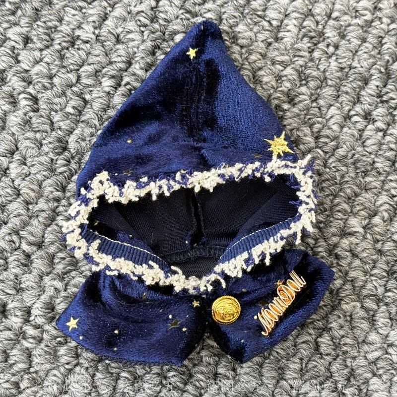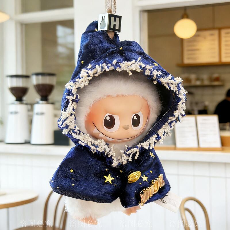 Labubu 4代用 スター刺繍 フード付き ケープ ラブブぬいぐるみ 着せ替え マント アクセサリー ホワイト/ブルー