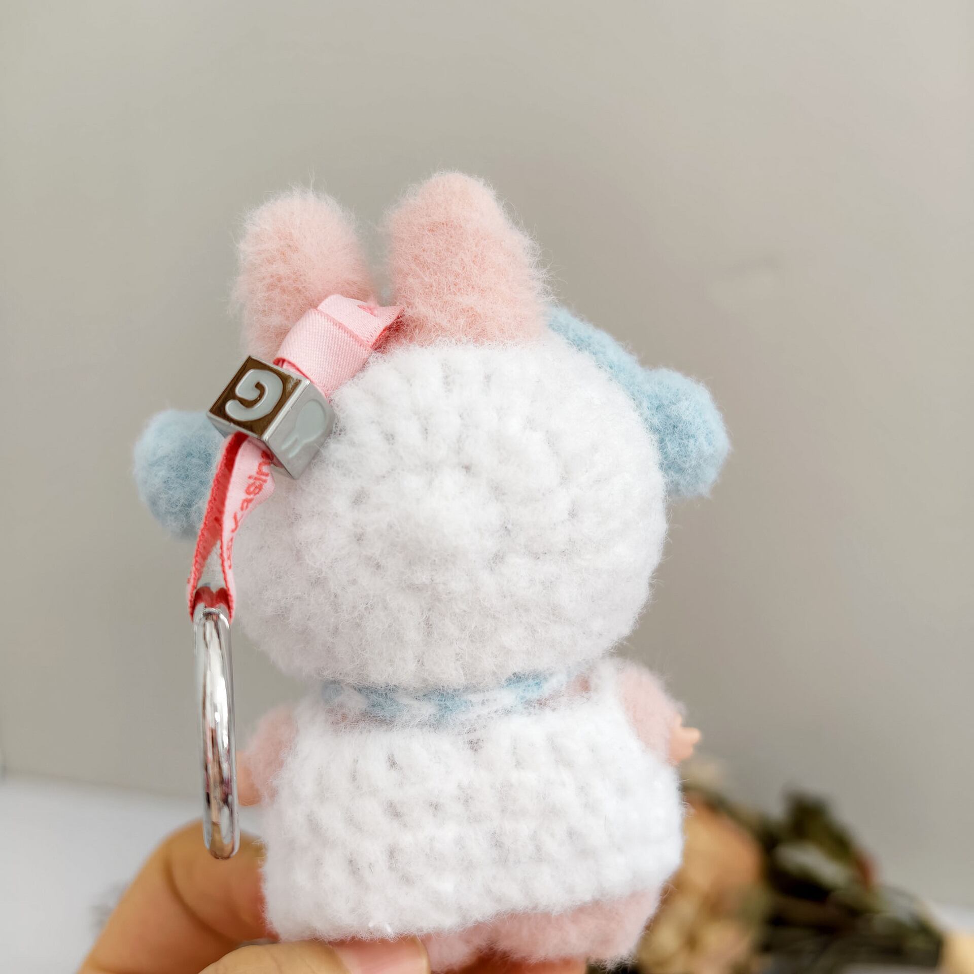 ・4代サイズに合わせた手作りアクリル糸のふわふわ編み込みデザイン。