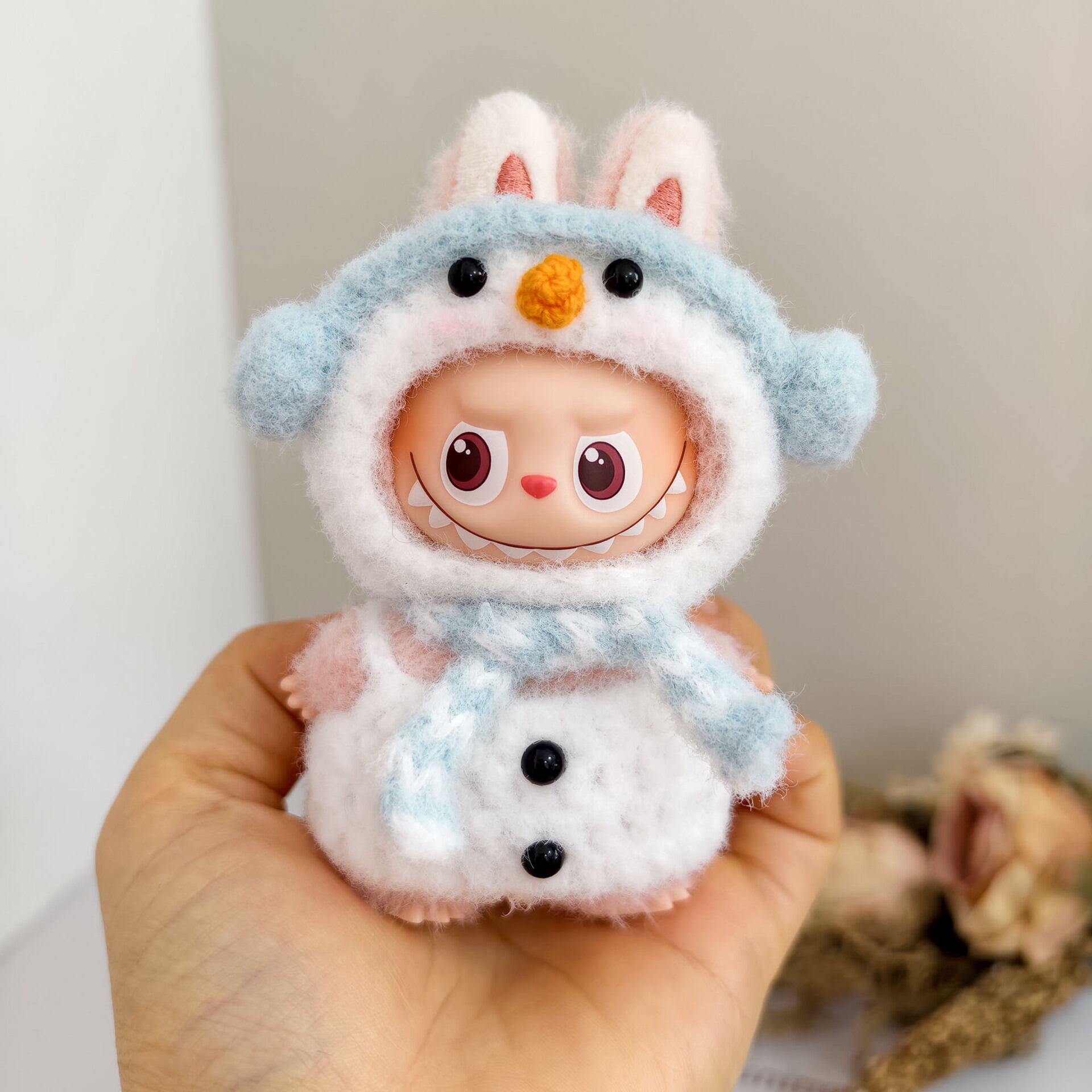 Labubu 4代用 手編み ペンギン ロンパース+帽子+マフラー ラブブぬいぐるみ 着せ替え用 洋服3点セット