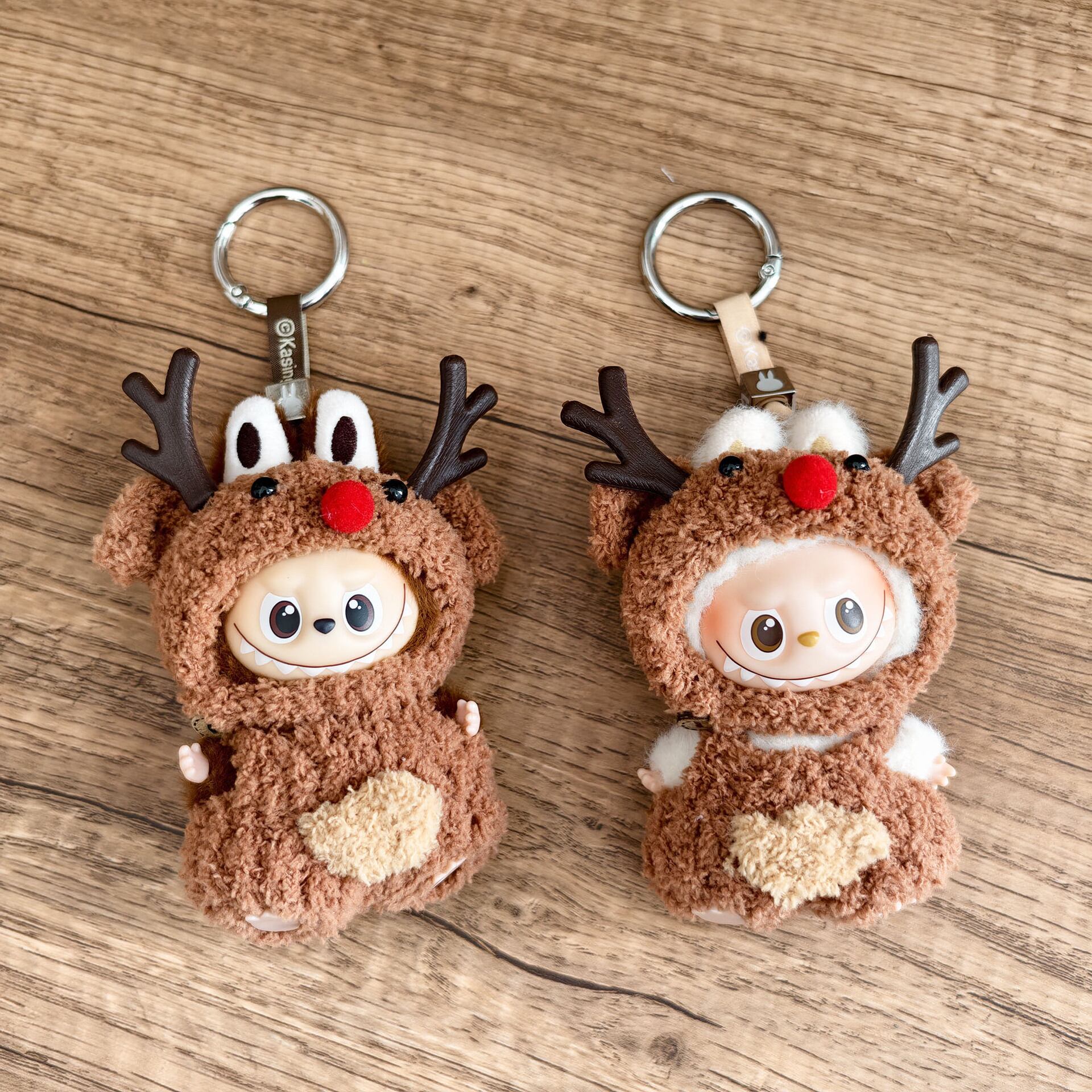 Labubu 4代用 手編み ニット ブラウン トナカイ ロンパース+帽子 ラブブぬいぐるみ 着せ替え用 2点セット