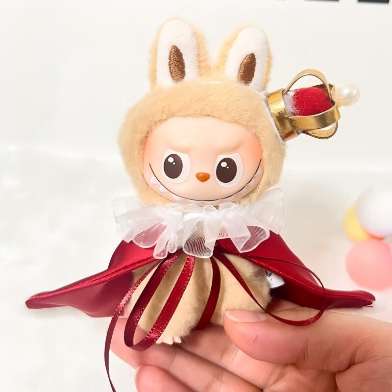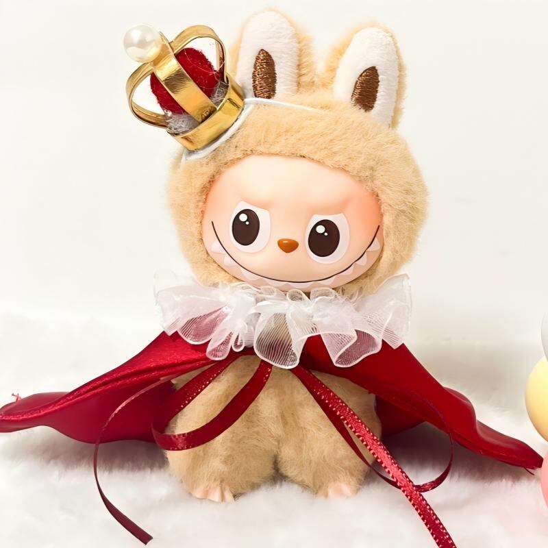 Labubu 4代用 王様マント+ネックリボン+クラウン ラブブぬいぐるみ 着せ替え アクセサリー 3点セット