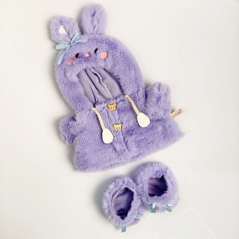 LABUBU 38cm用 フード付きうさぎ耳 ふわふわコート + シューズ ラブブぬいぐるみ 着せ替え衣装 2点セット 3色
