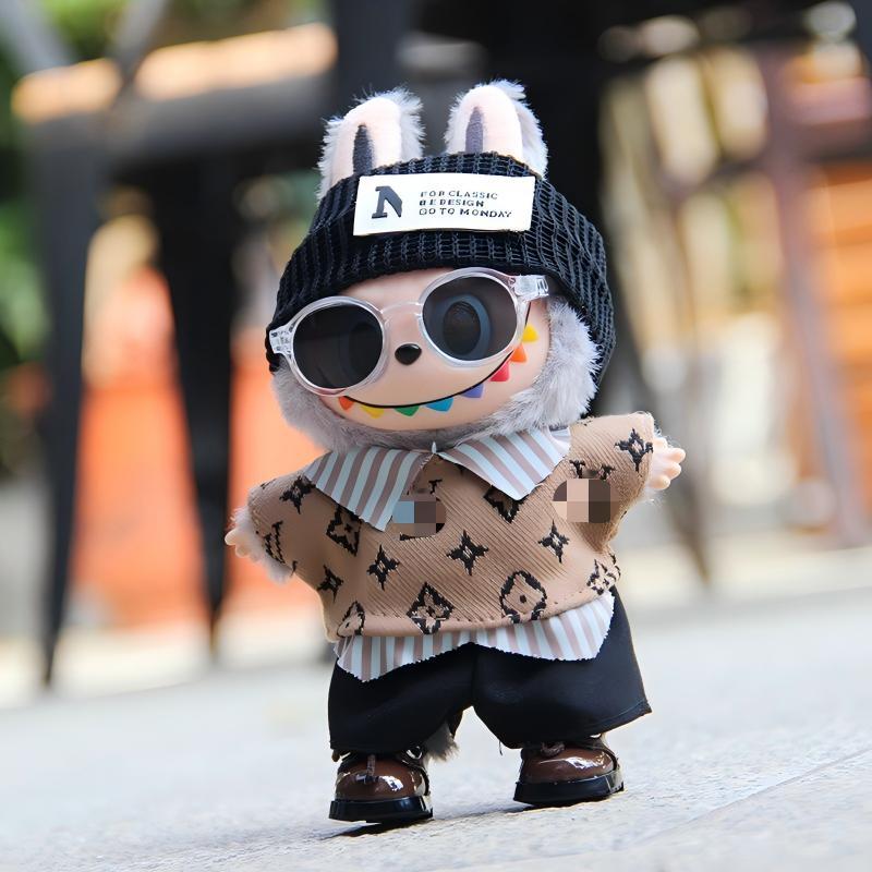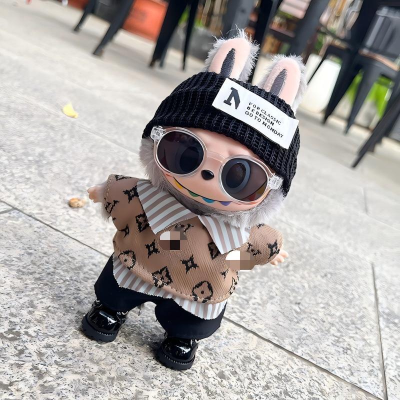 ニット風シャツにボトムスと帽子を合わせたコーディネート一式。