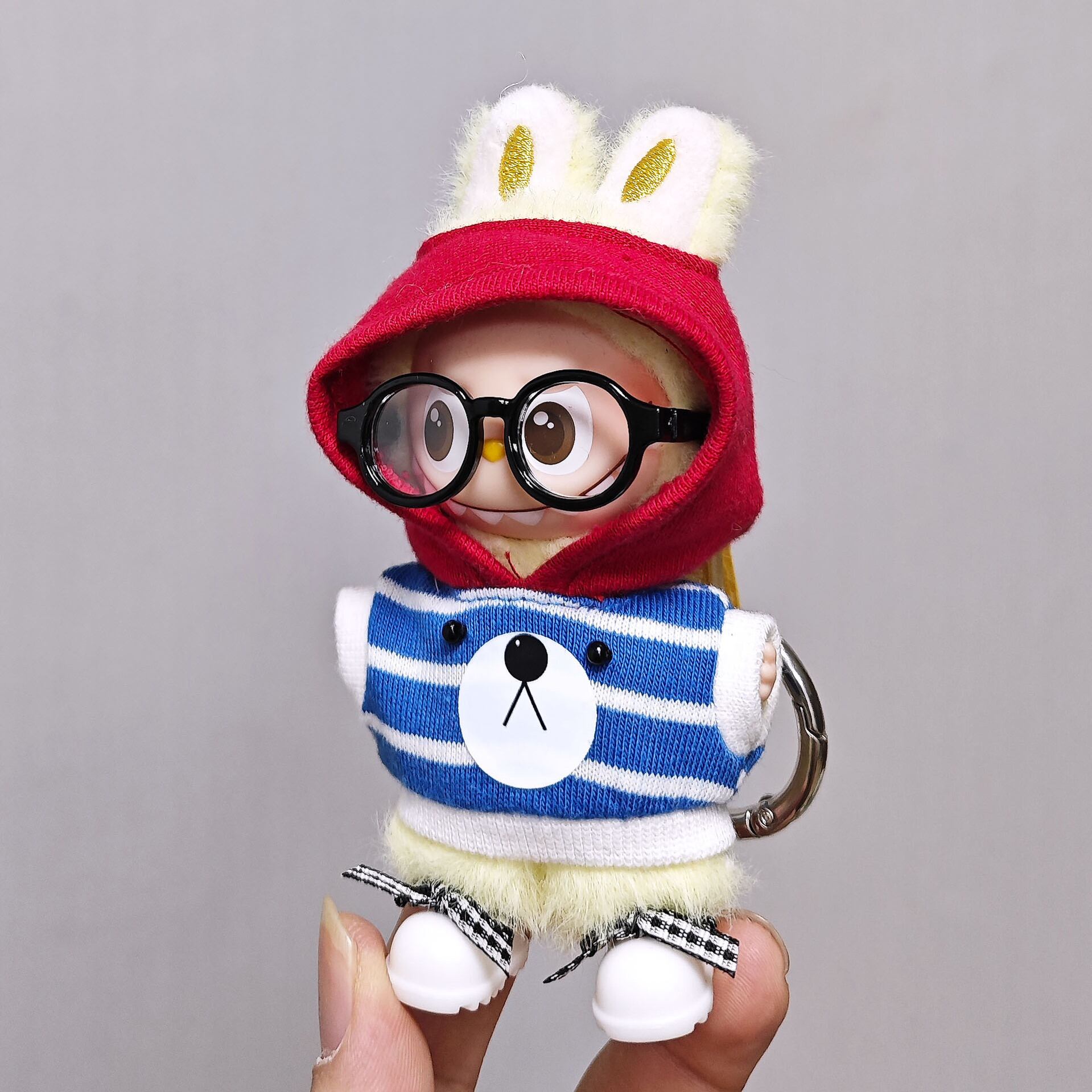 ラブブ 第4世代対応 ストライプ柄パーカー + 靴 Labubuぬいぐるみ用 カジュアル お着替え衣装 2点セット