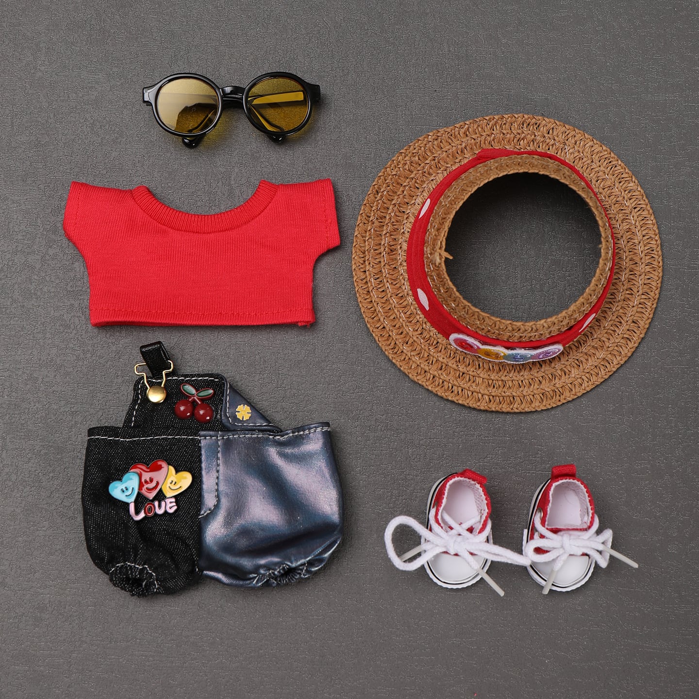 セット内容:トップス+サロペット+麦わら帽子+靴+メガネ