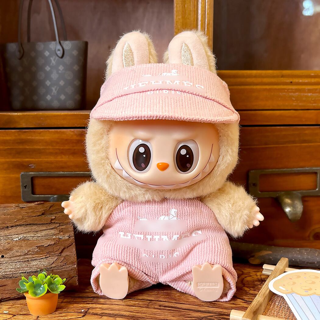 ゆったりシルエットのオーバーオールに、おそろいのキャップがセット。