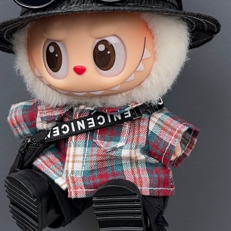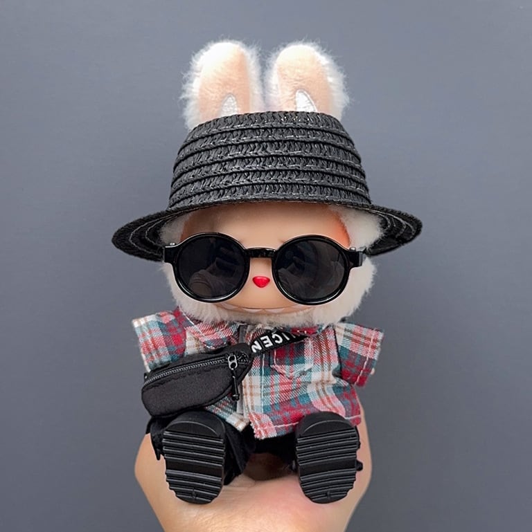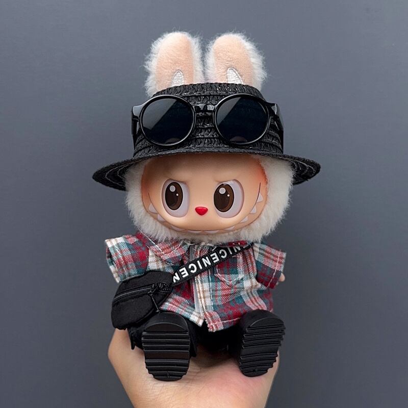 Labubu 1-3代対応 カジュアル シャツ+パンツ+麦わら帽子+サングラス+バッグ+シューズ ラブブぬいぐるみ 着せ替え 6点セット