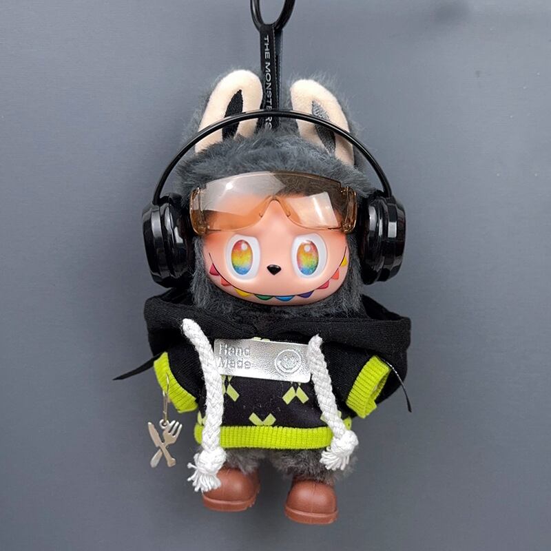 ラブブ 1-3代対応 パーカー+パンツ+メガネ+ヘッドホン+靴 Labubuぬいぐるみ用 カジュアル 着せ替え 5点セット