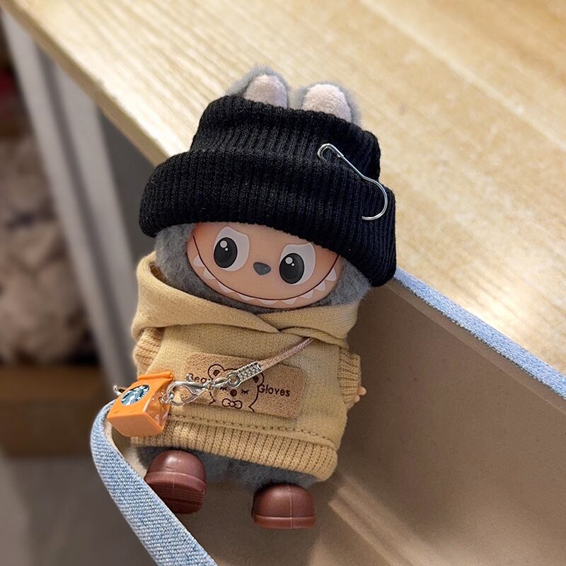 Labubu 4代対応 秋冬カジュアル パーカー+帽子+靴+チャーム ラブブぬいぐるみ用 着せ替え 4点セット カーキ