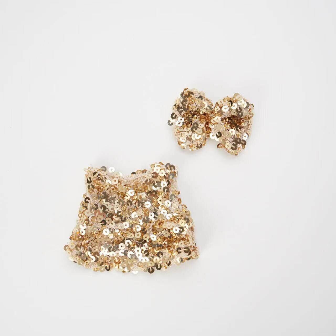 ・上品なシャンパンゴールドのスパンコールが優雅に輝く