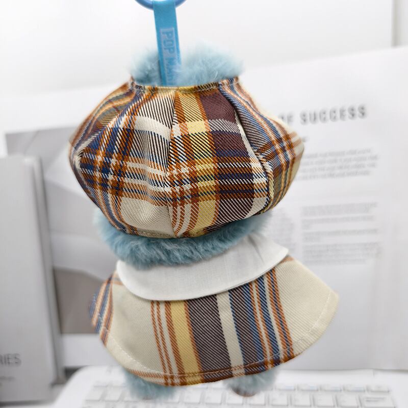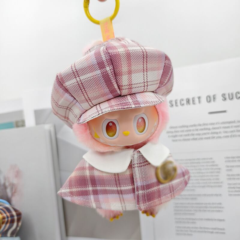 Labubu 1-3代対応 おしゃれ チェック柄 ショール+ベレー帽 ラブブぬいぐるみ用 ケープ 着せ替え 2点セット3色