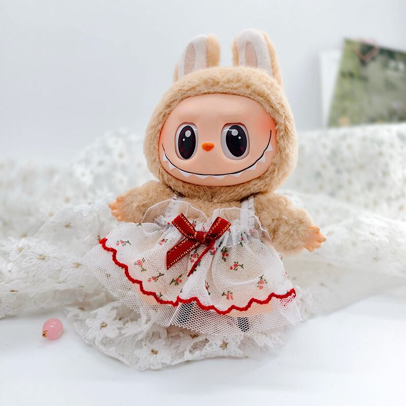 ラブブ 1-3代対応 花柄チュールドレス+リボンヘアアクセ レースワンピース Labubuぬいぐるみ用 着せ替え 2点セット