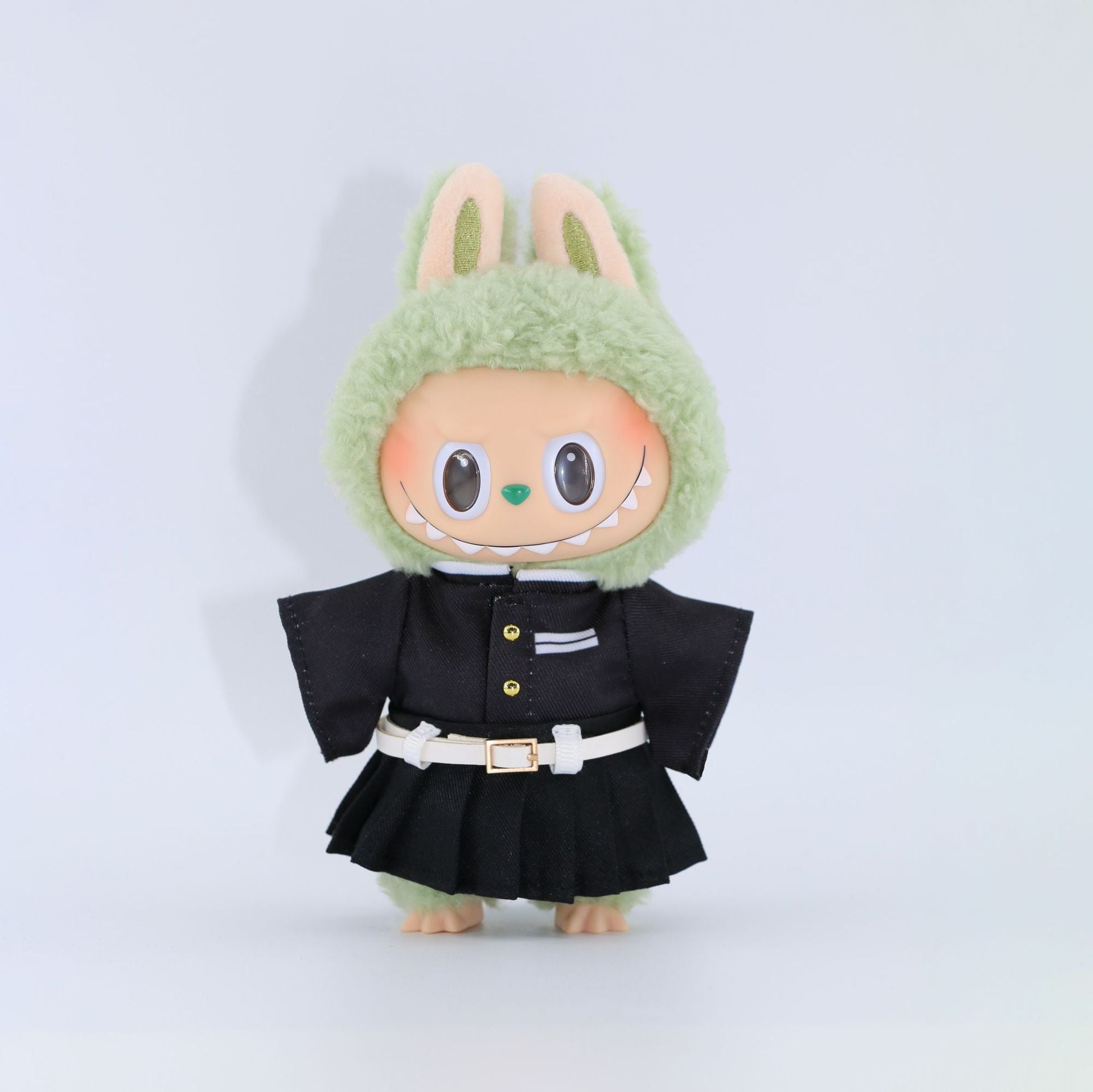 Labubu 1-3代対応 ブラック トップス+スカート+ベルト ラブブ ぬいぐるみ用 アニメ 着せ替え 3点セット