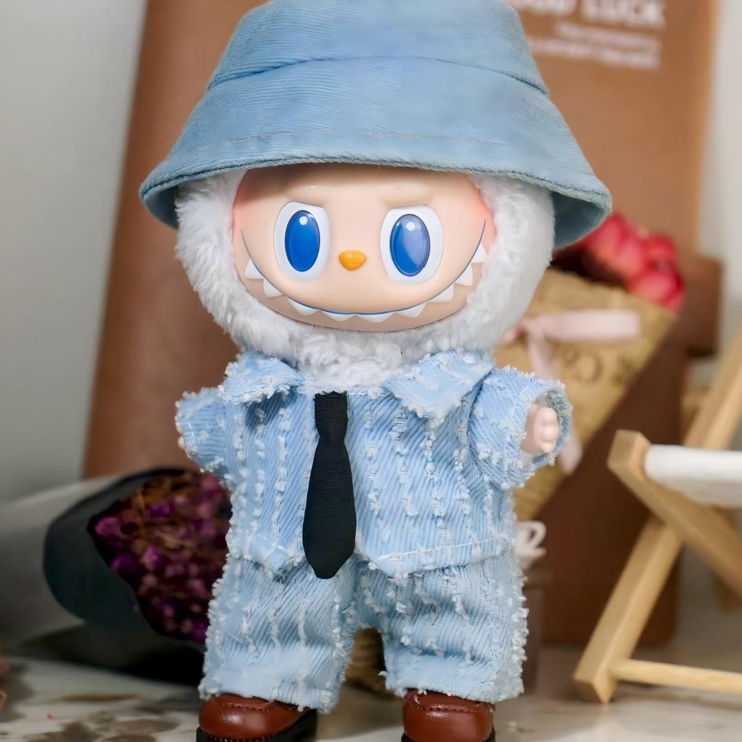 LABUBU 1〜3世代対応 ファッション デニム トップス+パンツ/スカート+帽子/ヘアアクセサリー ラブブ カジュアル 着せ替え服 3点セット